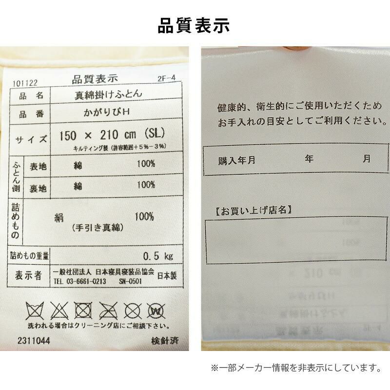 6. 手引き真綿 シルク 真綿肌掛け布団 0.5kg シングル 150×210cm 日本製