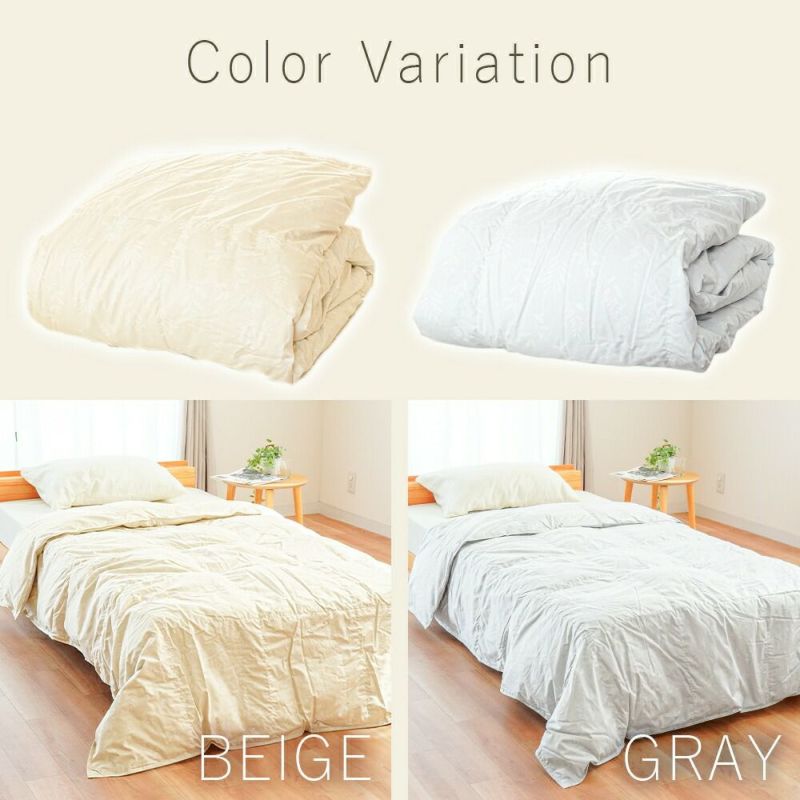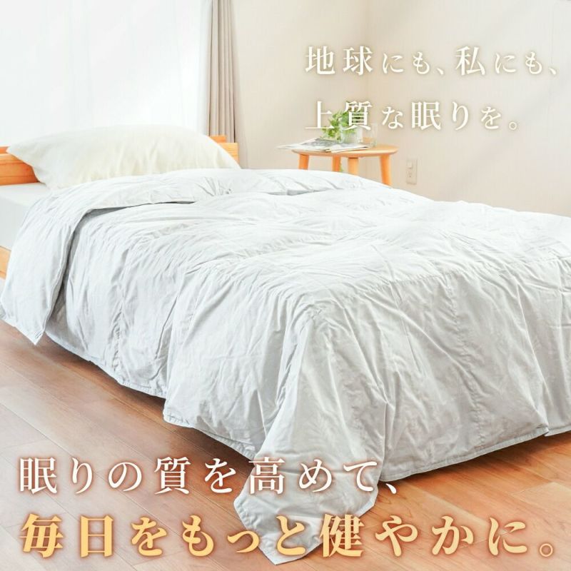 夏はこれ一枚で使えて、春から秋まで活躍する程よいボリューム感。天然素材の心地よいぬくもりで、快適な睡眠をサポートします。使い勝手が良く、万能な一枚です。