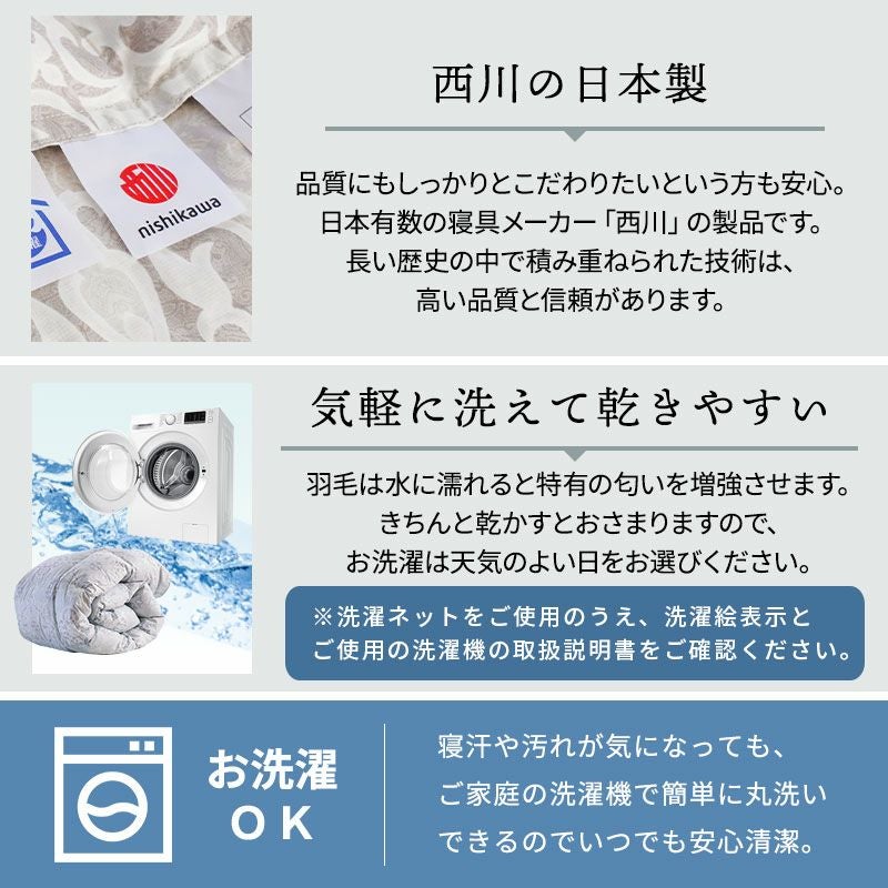 西川 増量タイプ グースダウン90% ダウンケット シングルロング