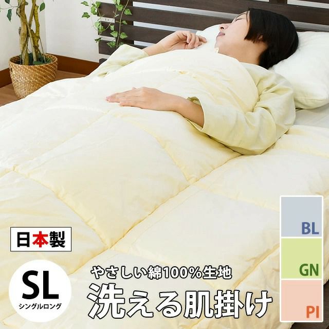 中綿に優れた保温性・速乾性をもつ洗える素材ダクロン フレッシュ 7-holeを使用した肌布団(キルトケット)。 シングルサイズ。軽くて暖かくアレルギーを起こしにくいのでアレルギーの方にも安心して使っていただけます。シンプルな無地カラー、ベージュ、ピンク、ブルー、グリーンからお選びいただけます。安心の日本製。GFマーク付き。