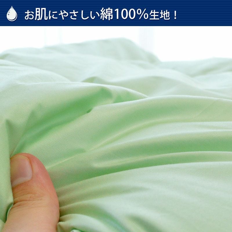 側生地には、215本打込以上の天然素材の綿100%生地を使用。 お肌に直接触れても安心、なめらかな光沢感があります。主に夏場のご使用がおすすめですが、毛布と併用したりすることで秋口まで使うこともできます。