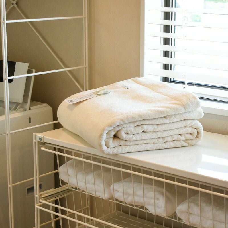 ヘビーウェイトの特徴は、糸が強くしっかりしていて、密度が高いこと。それによって、厚みが出て心地よい重さを生み出しています。 ロングパイルの特徴は、ふんわり感がアップし、長いループ状のパイルが寝汗などの水分をより多く吸収してくれます。上質な綿本来の「やわらかさ」と「優しさ」をより楽しめるタオルケットに仕上がりました。
