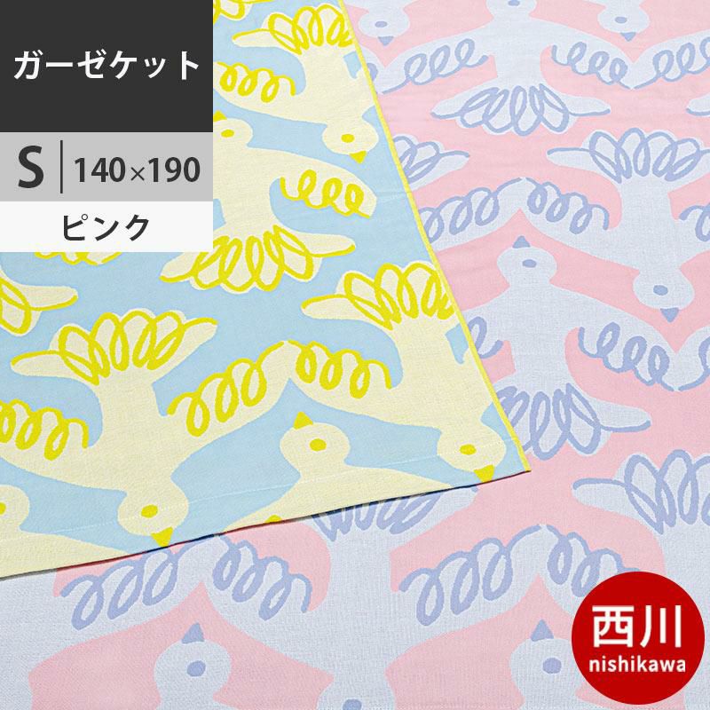 西川 ガーゼケット シングル 140×190cm フィンレイソン ムート 綿100% ピンク 鳥柄 テキスタイル FI9603【2023SS】