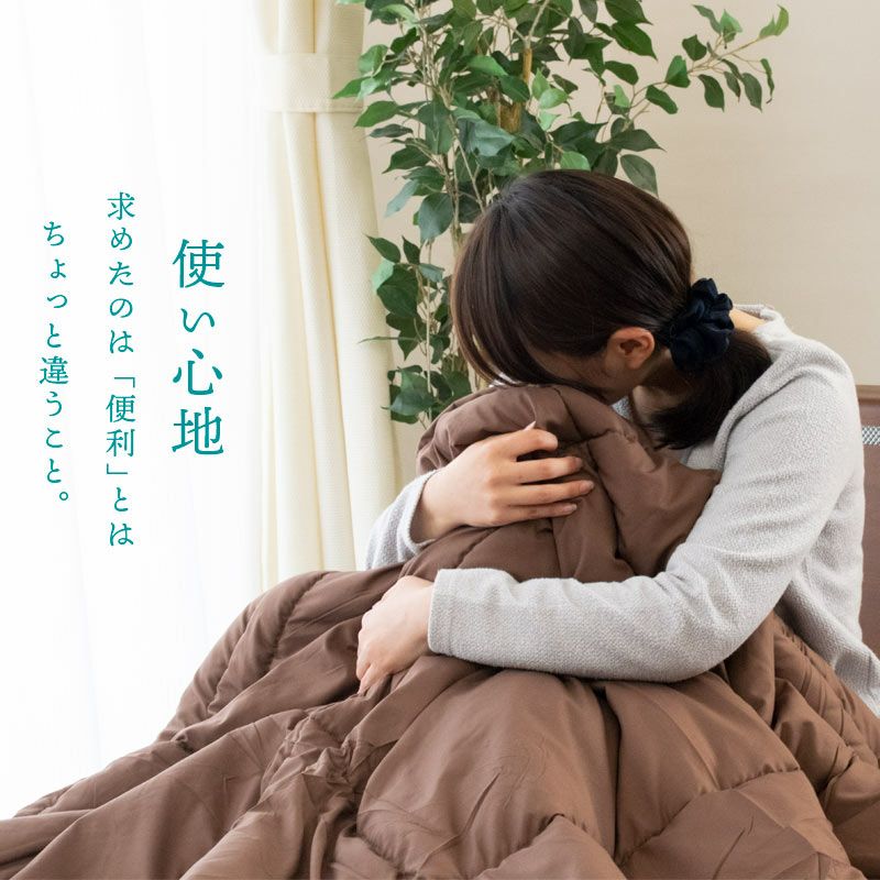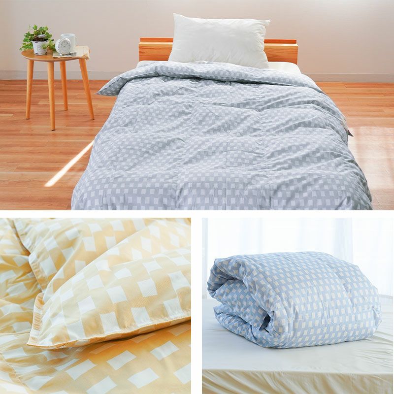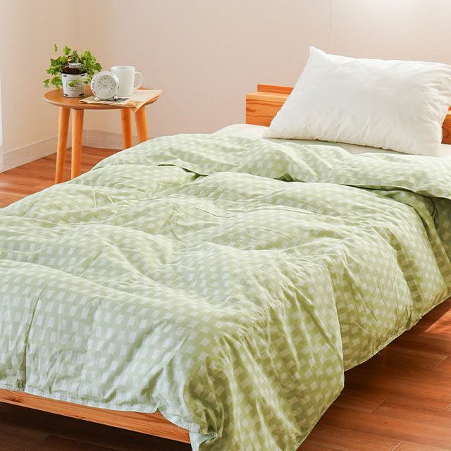 春・秋はもちろん、夏場の冷房の冷えが気になる方にもおすすめなうす手の肌掛け布団です。お手持ちの寝具と組み合わせれば、一年を通してお使いいただけます。麻やシルクなど、お好みの素材はありますか?