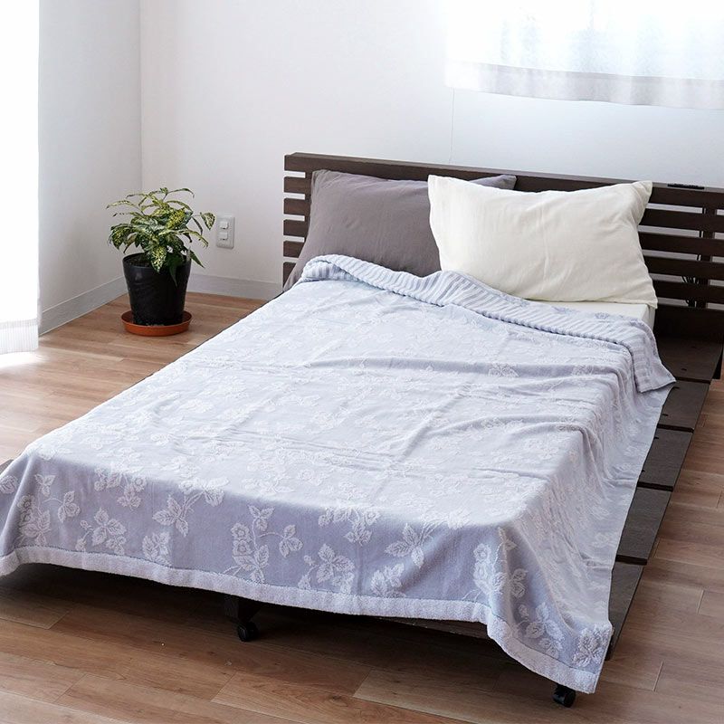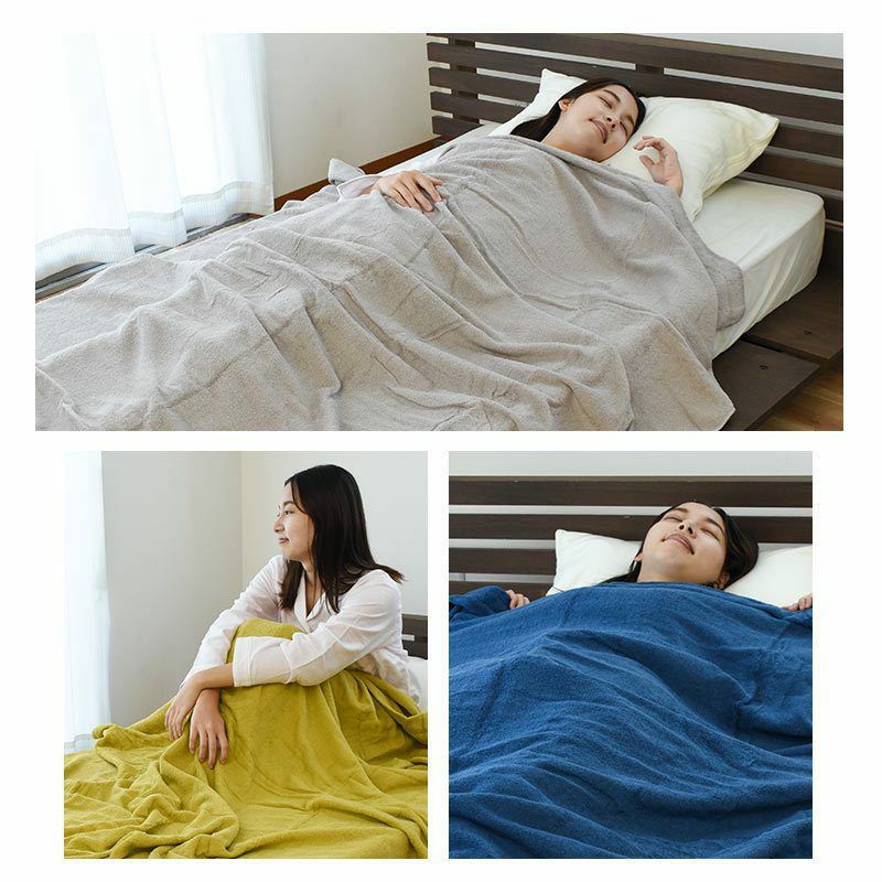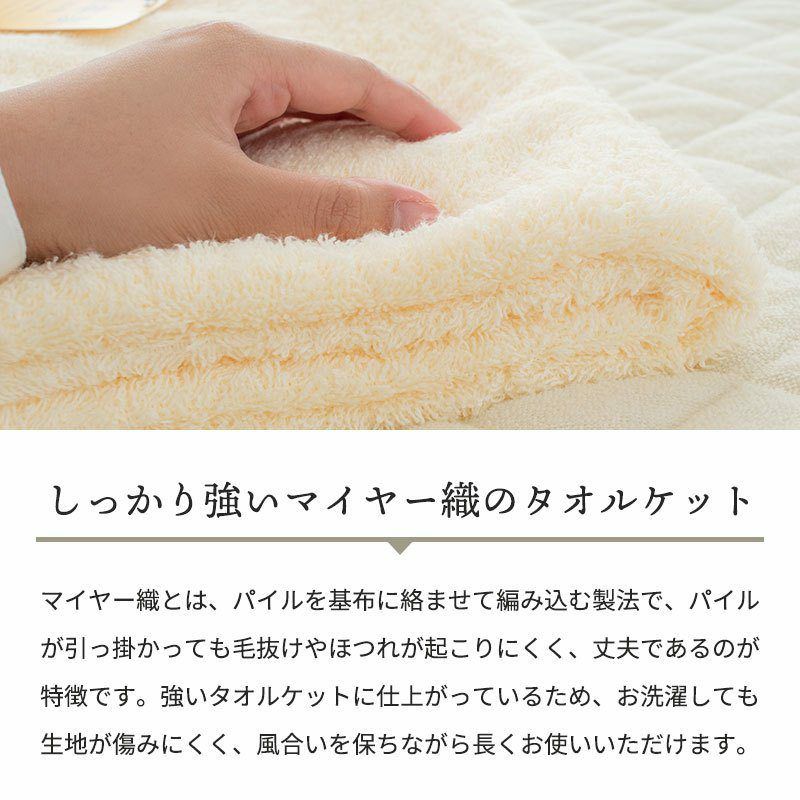 お洗濯や取り扱いのしやすいタオル素材のケットです。エアコンをあまり使わない方やタオルのふれ心地が好きな方におすすめしています。