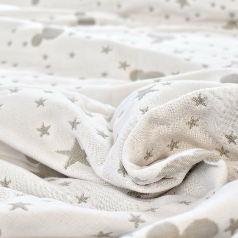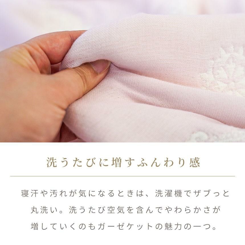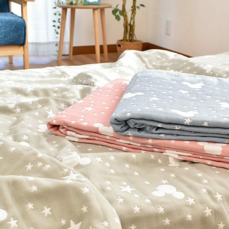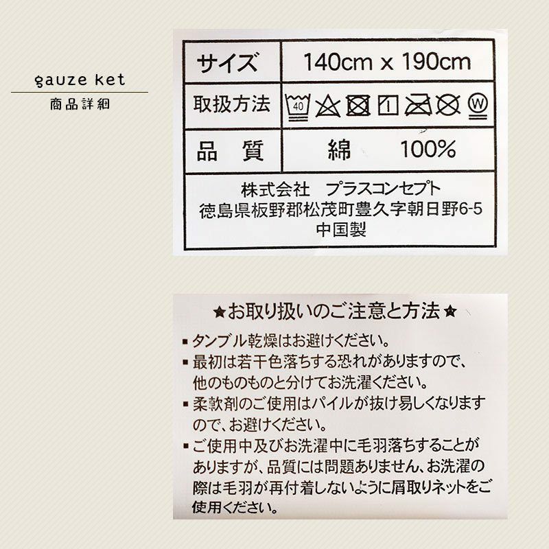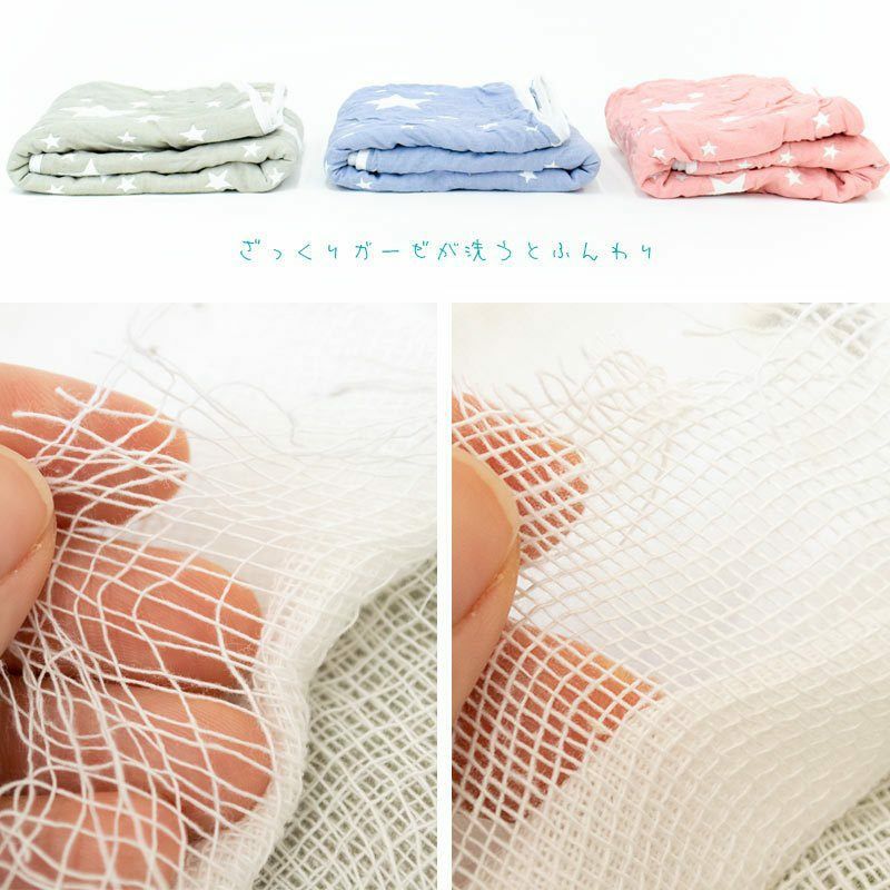 薄手のガーゼ生地を数枚重ねたふんわりしたケットです。ガーゼなので、さらりとした肌ざわりで暑がりさんに人気の素材です。
