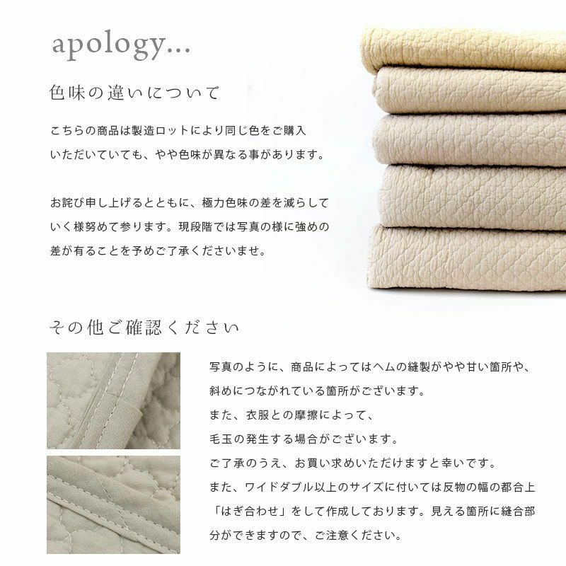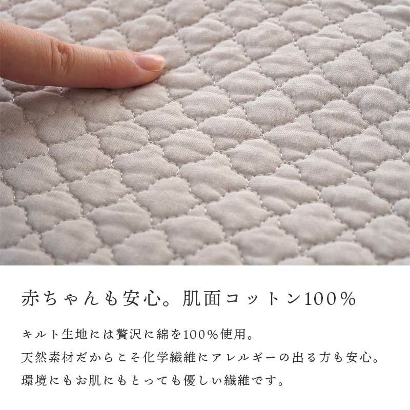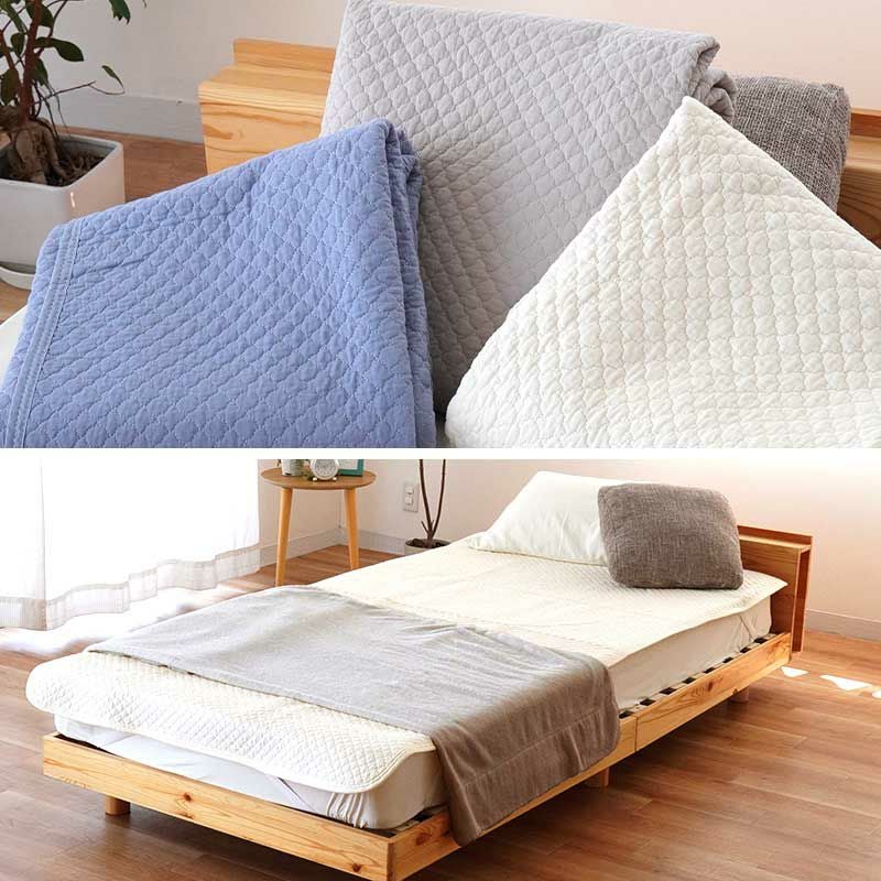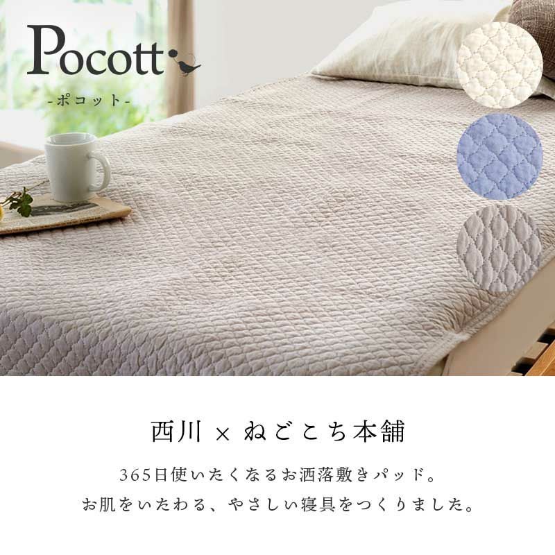 西川とのコラボレーションにより、当社オリジナルの敷きパッドができました。ポコポコとしたキルティングがキュート。綿100%の水洗いキルトを使った、お肌をいたわるやさしい寝具。