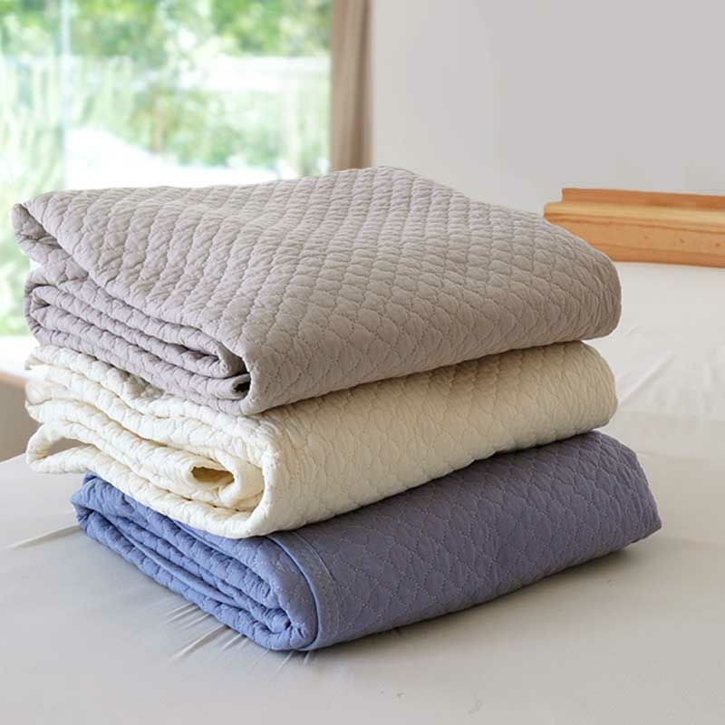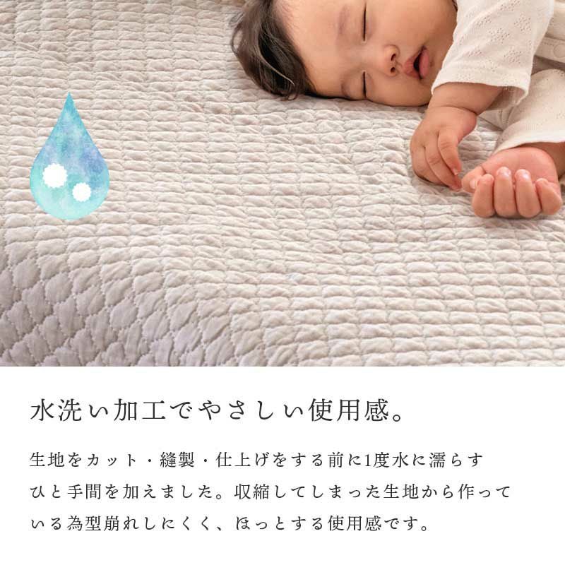 毎日毎日、たっぷり汗や皮脂・汚れを吸収している寝具たち。夏場はさらに湿気でベタつきが出て不快になりがち。あなたの眠りを守る寝具は、少しでも清潔でありたい。それも、あなたになるべく負担を掛けずに。そんな気持ちで細かく繊細なイブルに似たキルティングを施しました。ぐるぐると回転させても、中わたの片寄りを防いでくれます。