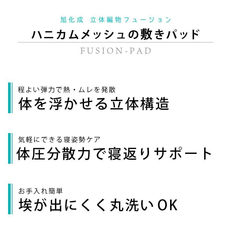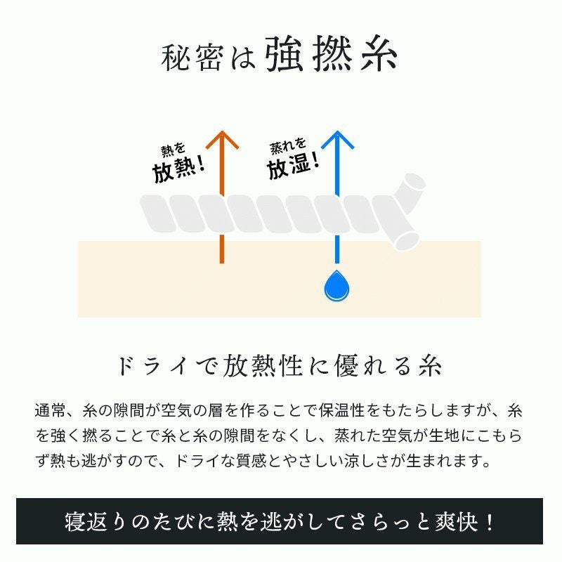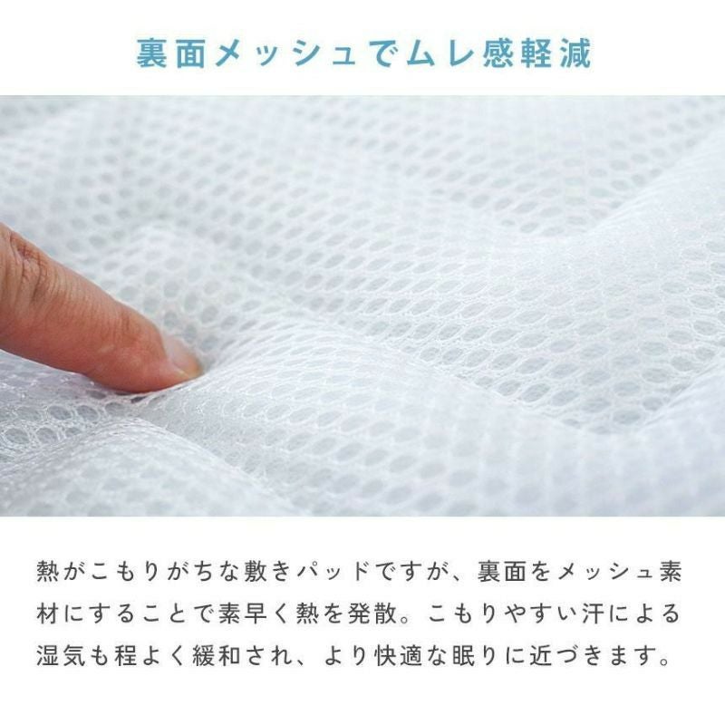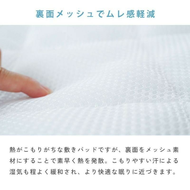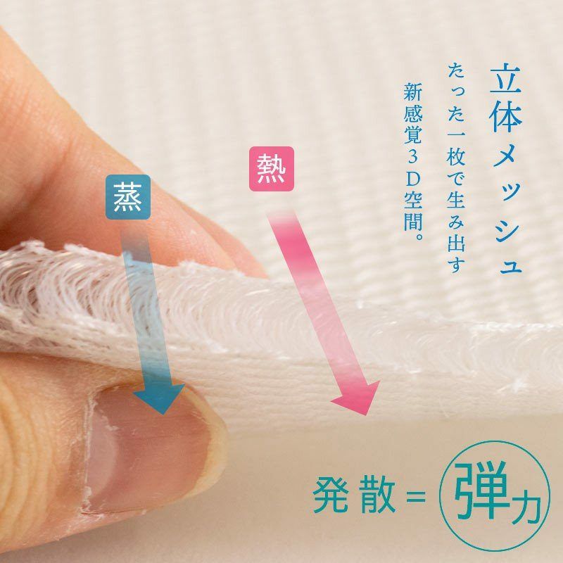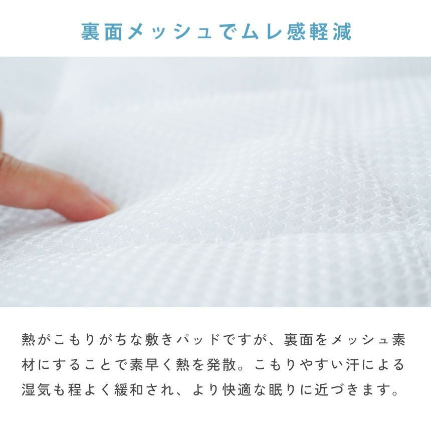 裏面をメッシュにすることで素早く熱を発散。体温や汗による湿気やジメジメも緩和されるので、より快適な眠りを実現します。