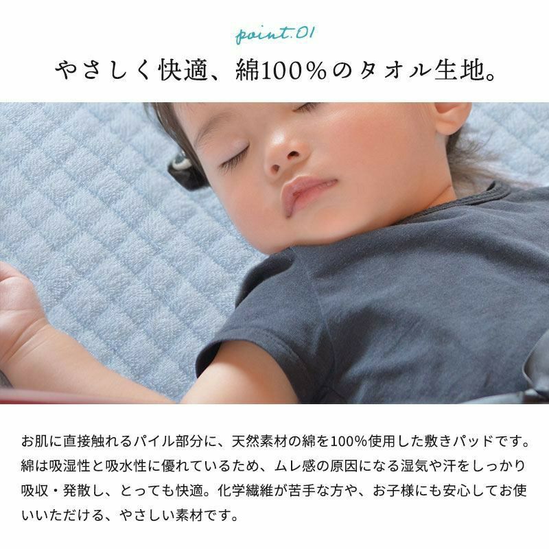 綿100%のパイルが汗をしっかり吸収!寝具の老舗メーカー西川製、タオルのような優しい触れ心地の敷きパッド。