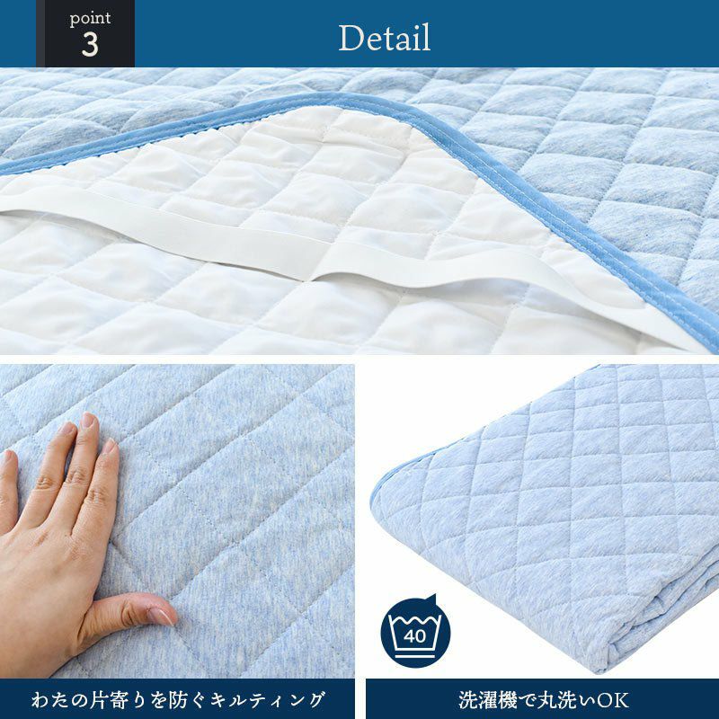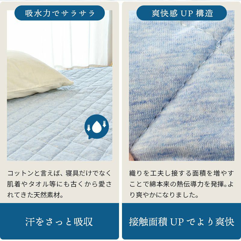 さらにこの敷きパッドは、中わたまでコットン100%!汗をしっかりと吸収してサラっと爽やか。ベタつきにくい寝心地♪