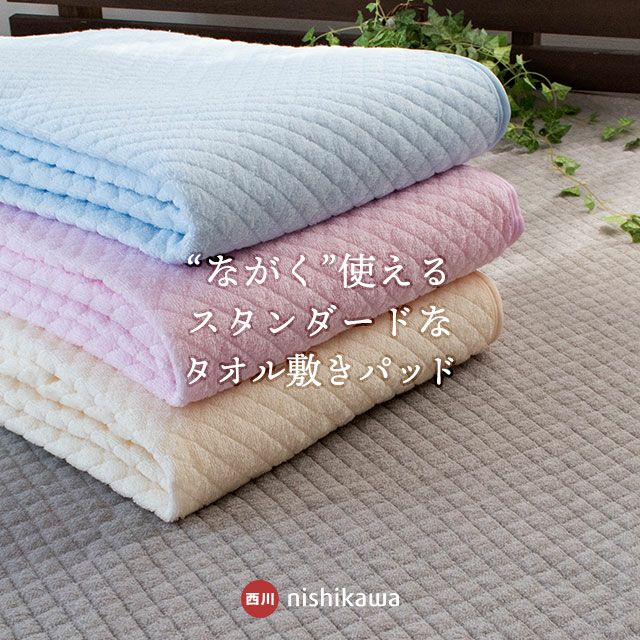 綿100%のパイルが汗をしっかり吸収!寝具の老舗メーカー西川製、タオルのような優しい触れ心地の敷きパッド。