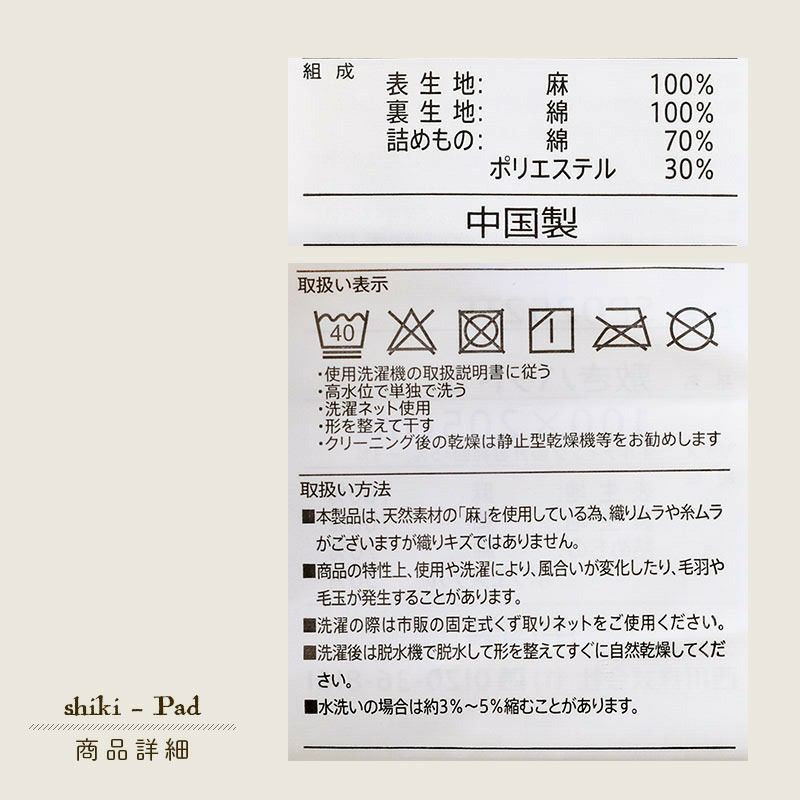 組成表生地:麻100%(リネン)