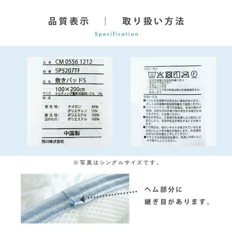 5. 西川 ツヌーガ ひんやり 敷きパッド セミダブル 120×200cm