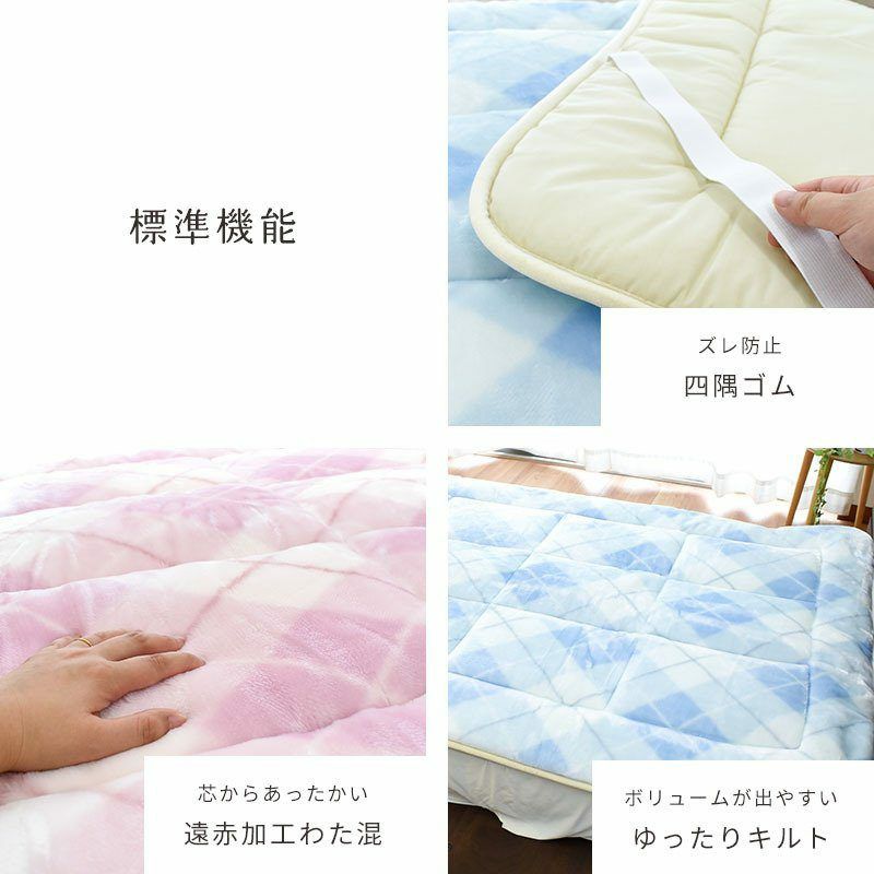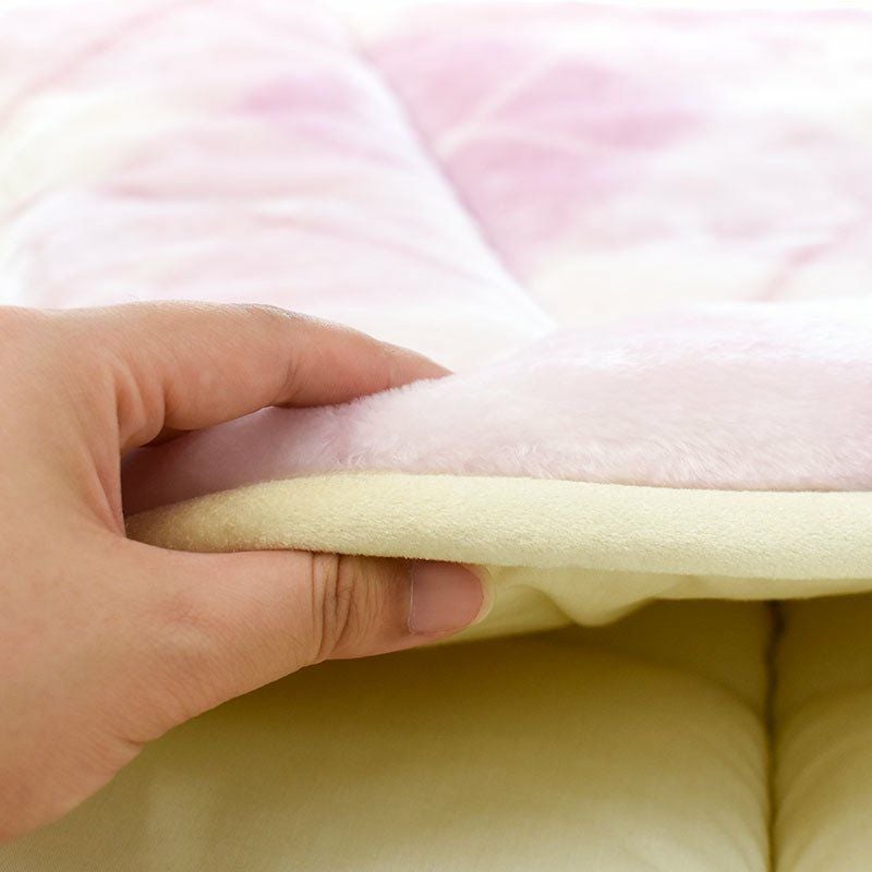 すき間を見せないほどに超極細のアクリルがギュッと詰まった贅沢な毛布敷きパッド。毛羽がたくさん詰まっているからこそ、ズッシリと重みのある敷きパッドになりました。きめ細やかな毛羽が、なめらかでいてスッと肌に馴染みます。