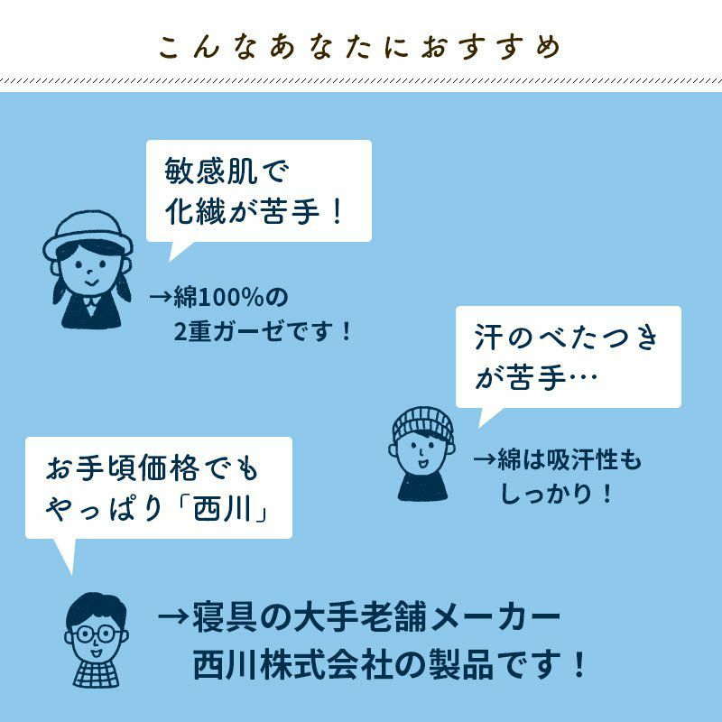 タオル地やガーゼの敷きパッドは使い方次第で一年中お使いいただけるのが特徴です。