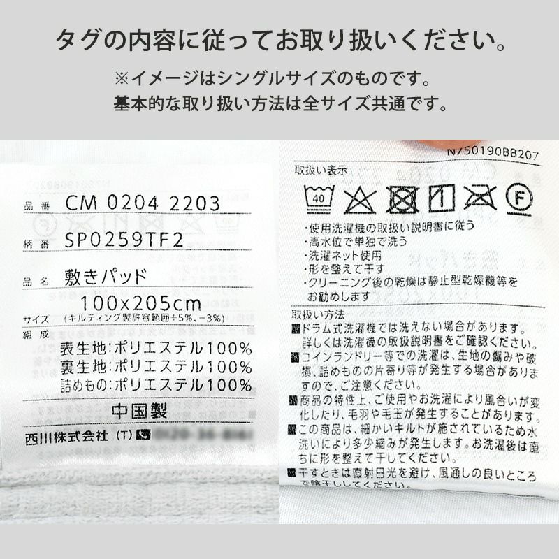 西川 タオル地 敷きパッド ダブル 140×205cm