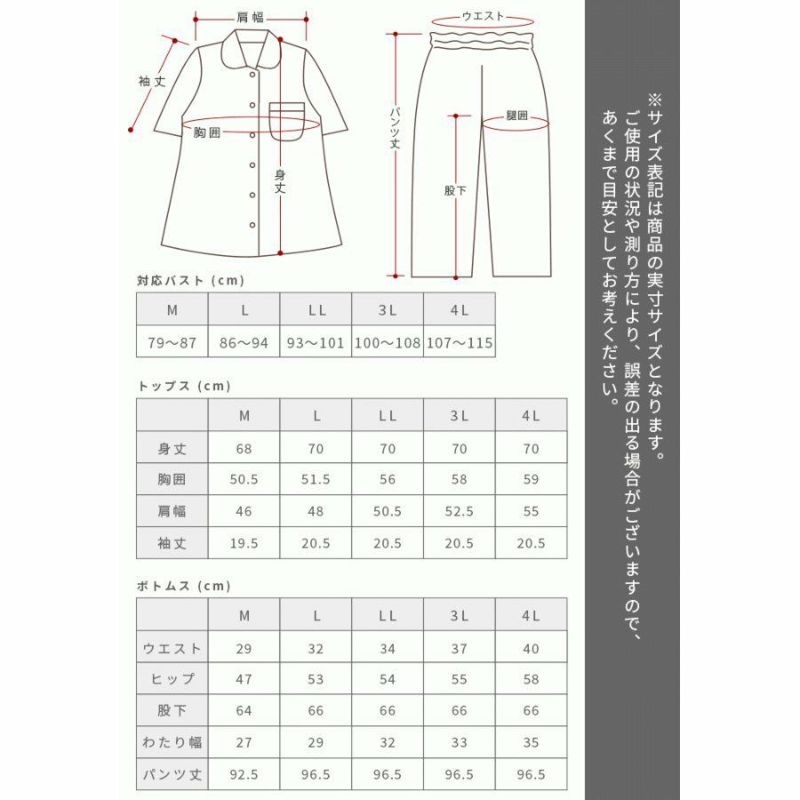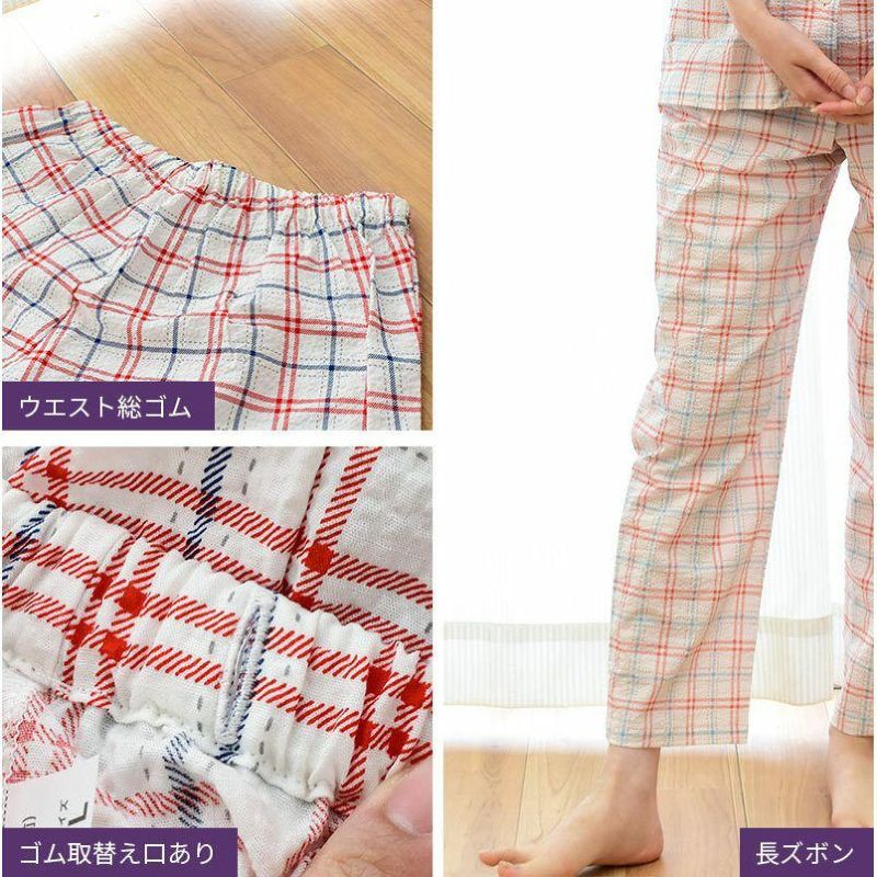 3. 【完売】パジャマ レディース M L LL 3L 4L 大きいサイズ 綿100% 半袖 長ズボン 婦人 かわいい チェック柄 マリン柄 国産