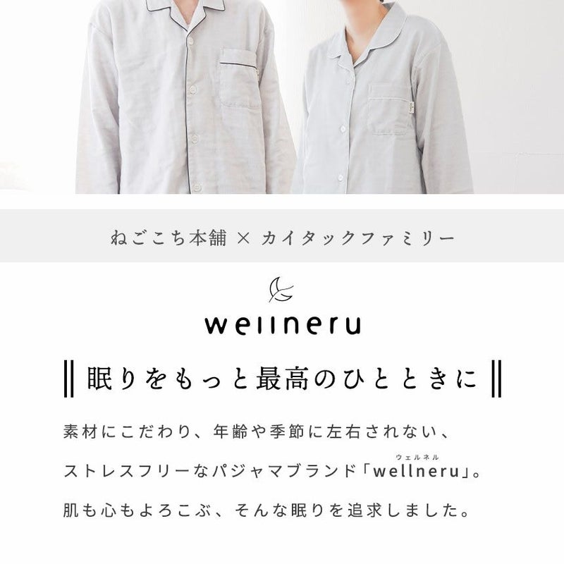 素材にこだわり、年齢や季節に左右されない、ストレスフリーなパジャマブランド「wellneru(ウェルネル)」。 睡眠環境寝具指導士が考えたパジャマで毎日の睡眠に幸せを感じてほしい。肌も心もよろこぶ、そんな眠りを追求しました。