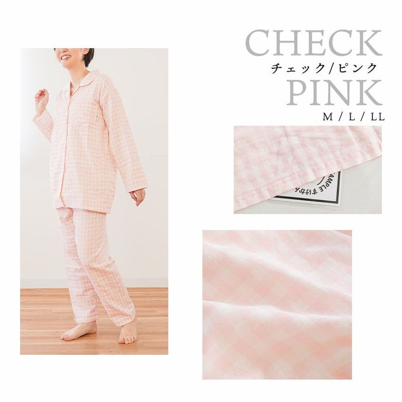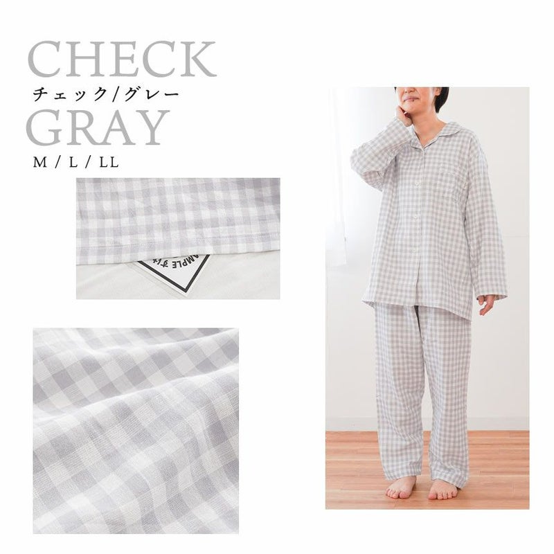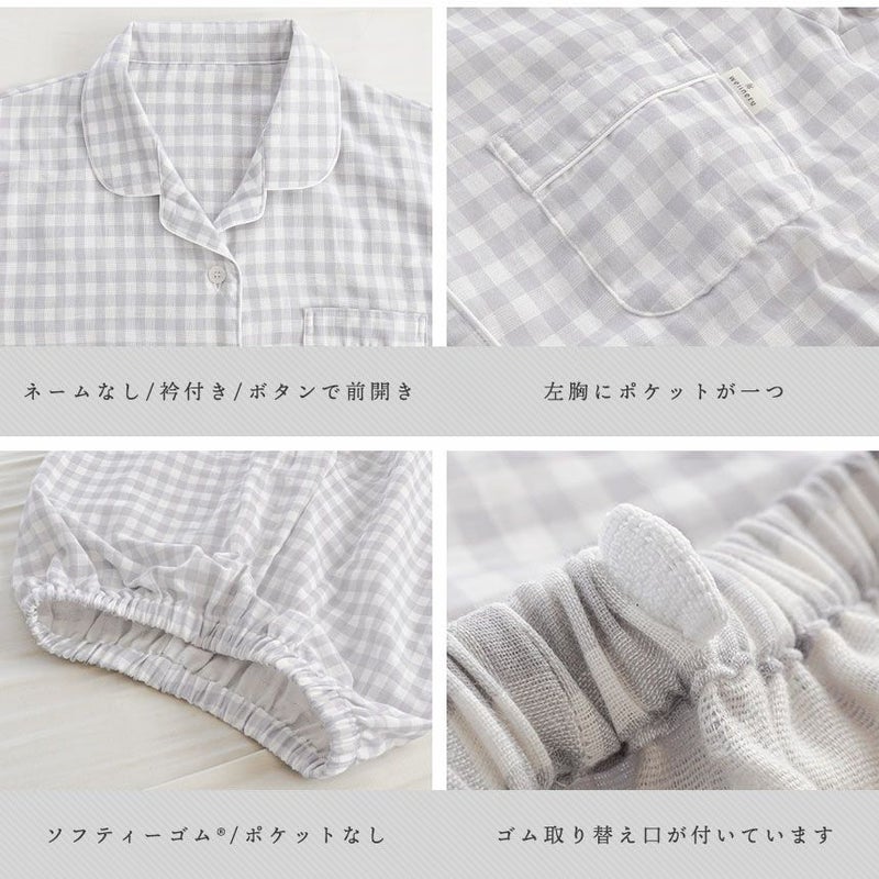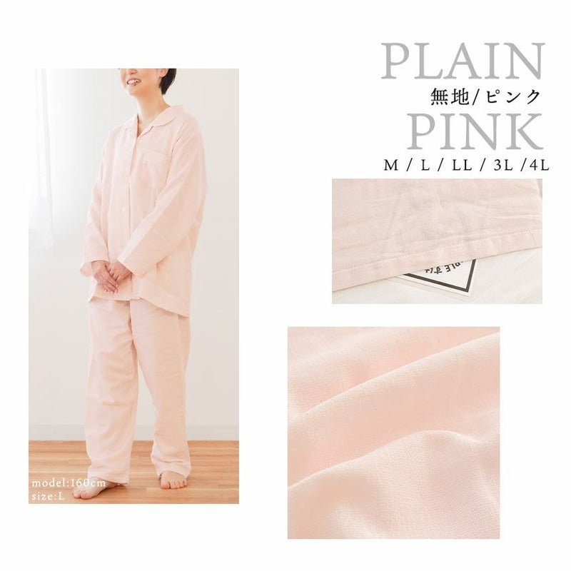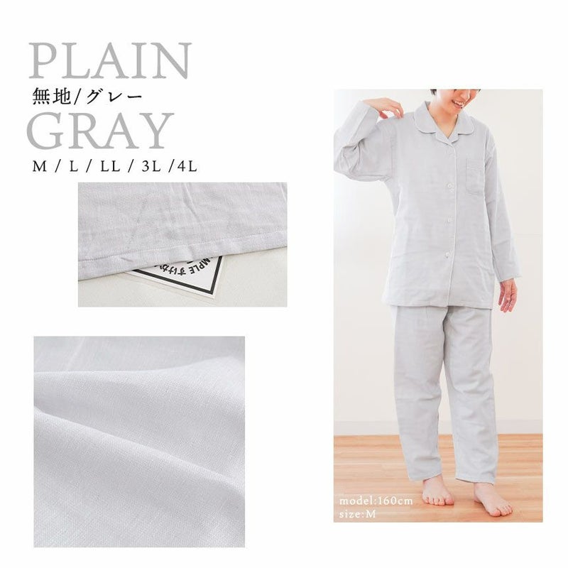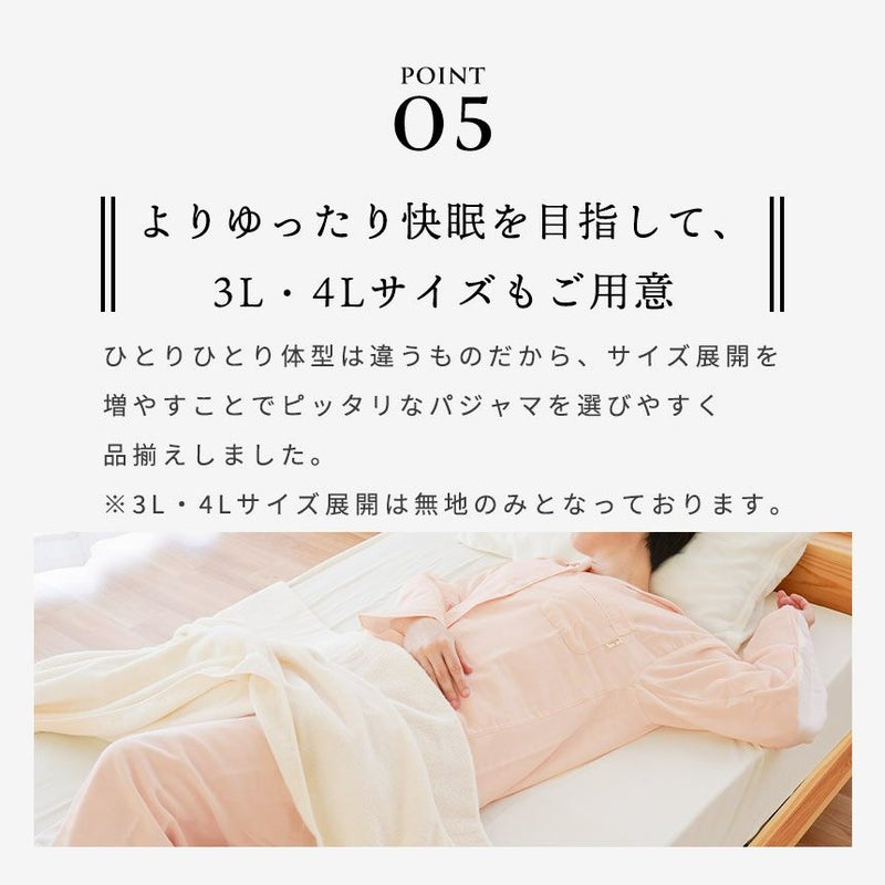 5. 日本製 ガーゼ パジャマ レディース 綿100% 無撚糸 2重ガーゼ LL・3L・4L・5L 大きいサイズ対応 wellneru