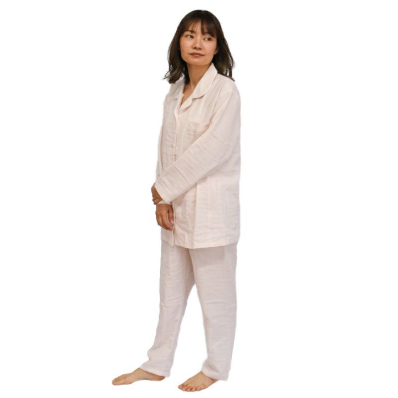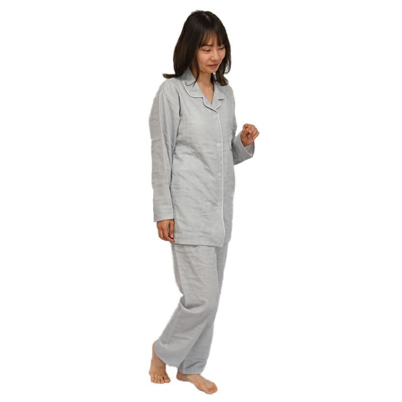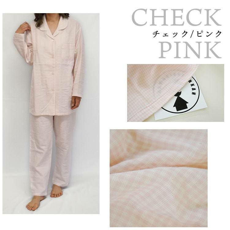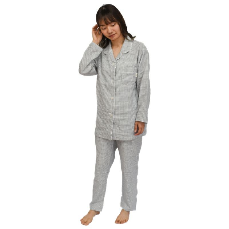 パジャマ,レディース,wellneru,無撚糸,2重ガーゼ,快眠パジャマ,ガーゼ,婦人,M,L,LL,綿100%,綿,コットン,日本製,春,夏,長袖,長ズボン,通気性,ナイトウェア,ウェルネル,アンツィッシュ,ギフト,母の日,無地,チェック,ピンク,グレー,ペア,結婚祝い