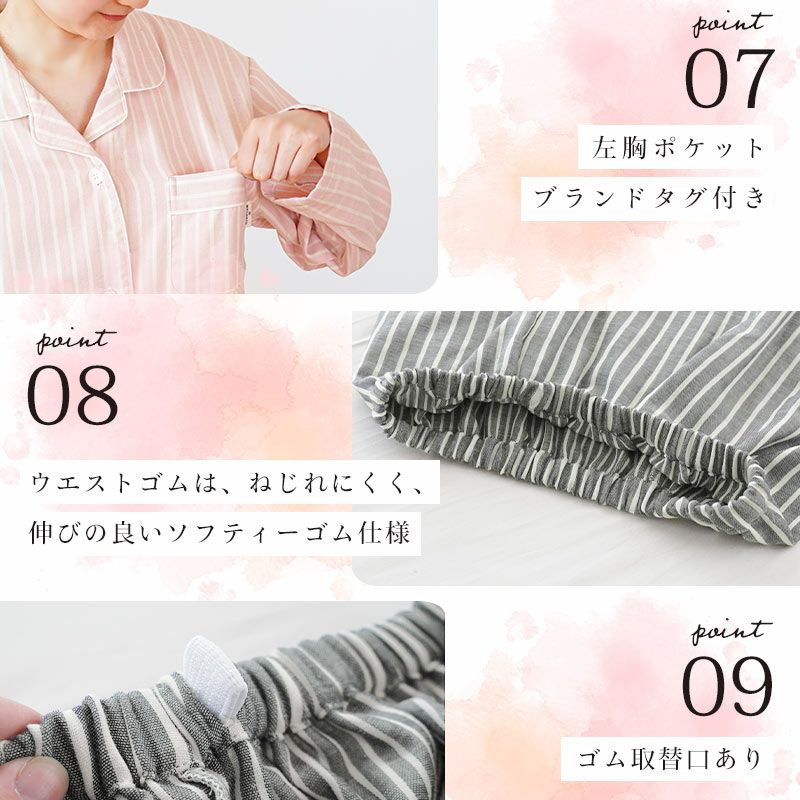 5. 3重ガーゼ パジャマ レディース 播州織 熟成綿 wellneru