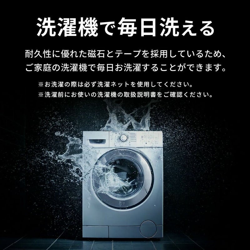 耐久性に優れる磁石とテープを採用しているのでご家庭の洗濯機で毎日お洗濯することができます。