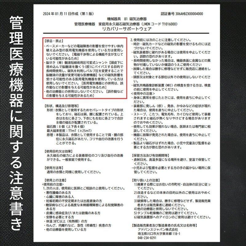 一般医療機器を謳うパジャマやルームウェアは多くありますが、リカバリーサポートウェア®はワンランク上の管理医療機器に分類されるスリープウェアです。その為、一般医療機器のウェアよりも更に高い効果が期待できるのが特徴です。