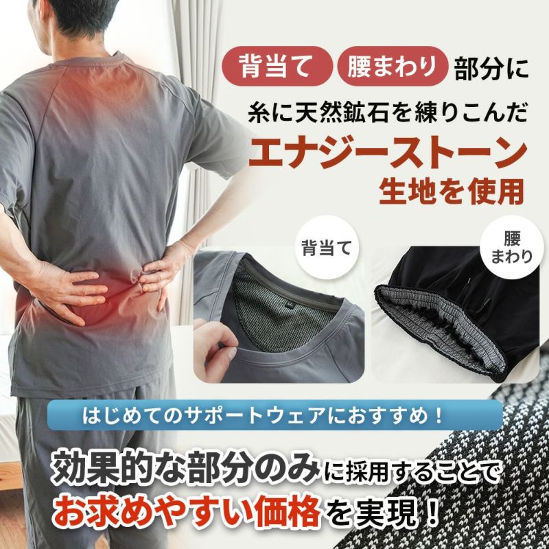 ・背当て・腰まわり部分に天然鉱石を練りこんだエナジーストーン生地を使用