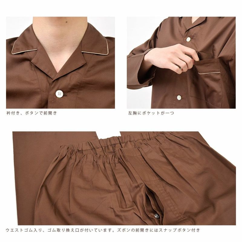 上質のピマ綿から生まれた高品質の超長綿繊維を使用したパジャマ。美しい光沢となめらかな肌触りです。肌に優しい綿100%、安心品質のロマンス小杉・日本製です。紳士用、婦人用それぞれにMサイズ、Lサイズあります。色はテラコッタ(ピンクオレンジ)、ブルースター(ブルー)、シード(ブラウン)の3色。