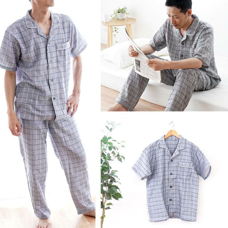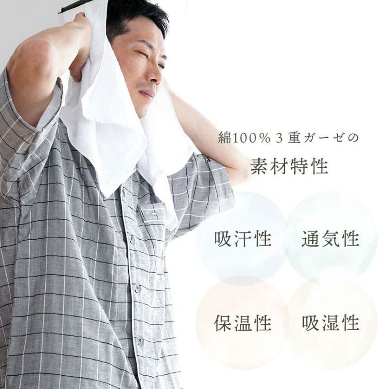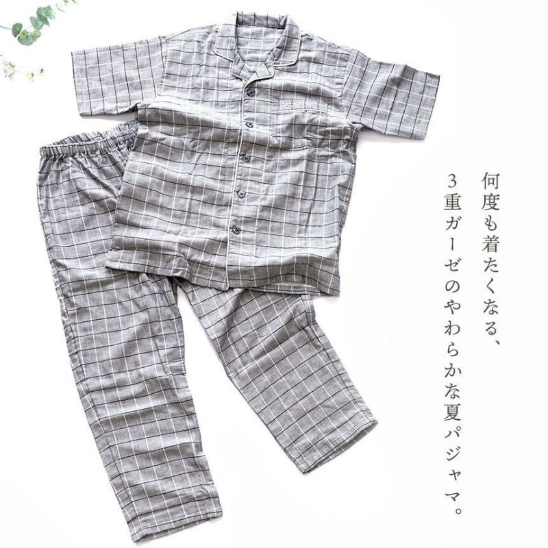 4. 快眠ラボ ストレッチ雲ごこちガーゼ 半袖 パジャマ メンズ M/L/LL