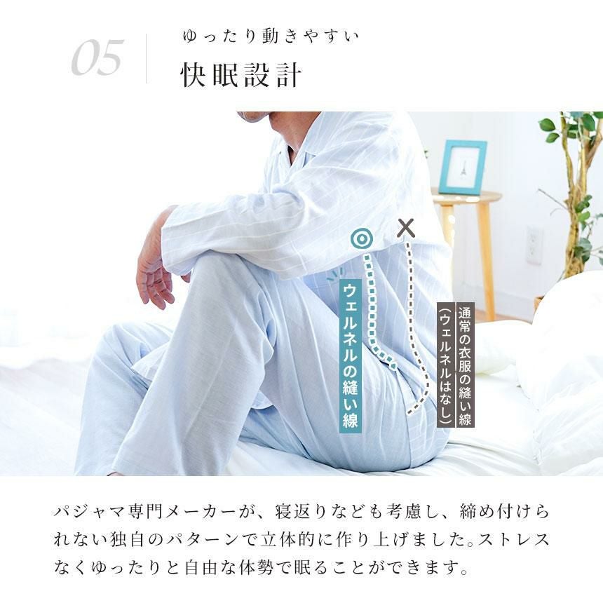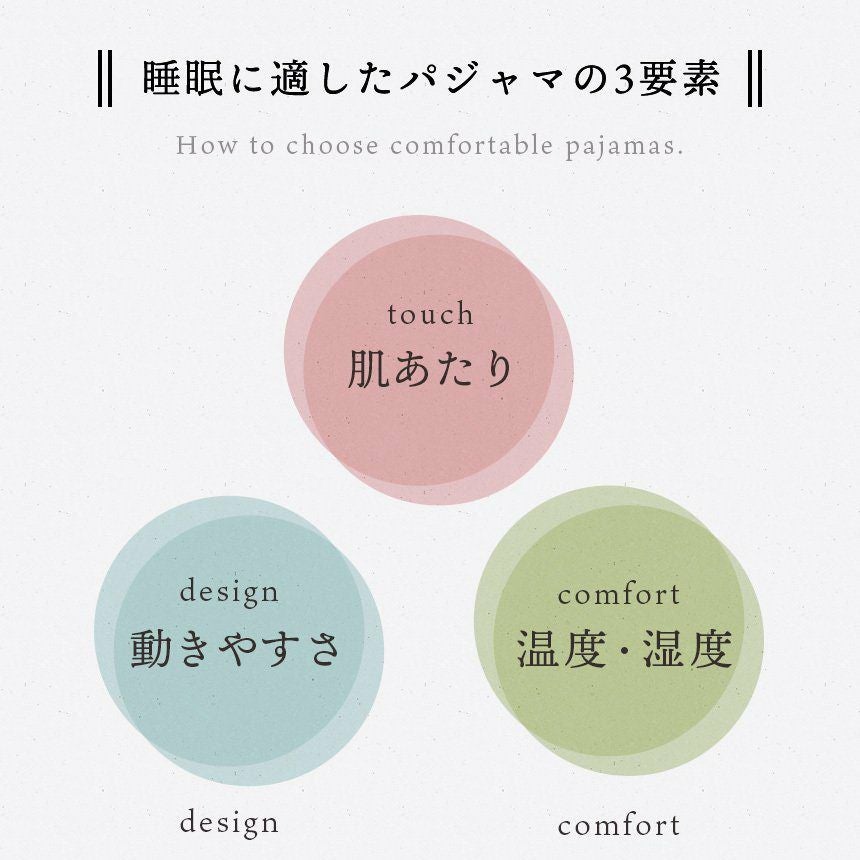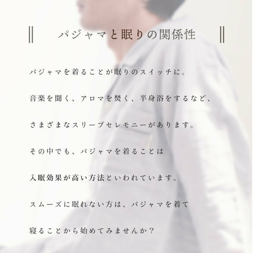 パジャマに「着替える」ことも効果的なスリープセレモニーとなります。しっかり眠って、生き生きした毎日を過ごすお手伝いをしてくれるのがパジャマの大切な役目です。