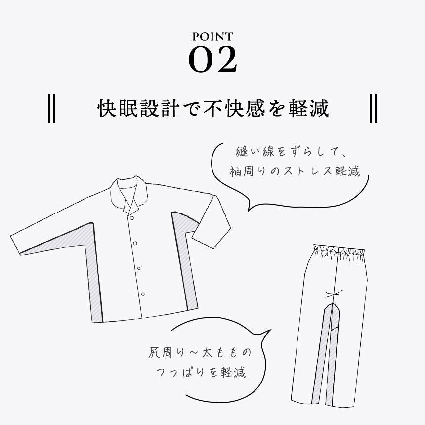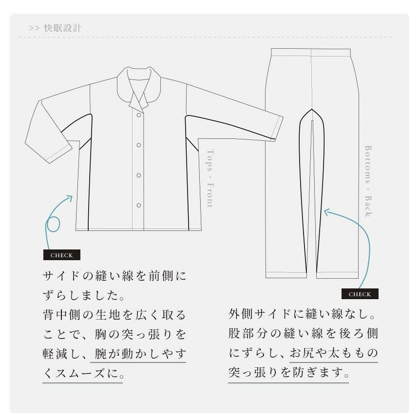 寝る時の姿勢は、通常とは違う部分に重力がかかるため、立っている時と眠る時では体型が異なります。 Kaimin Laboのパジャマは寝返りなども考慮し、身体が締めつけられない独自のパターンで立体的に作られています。