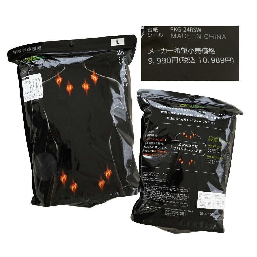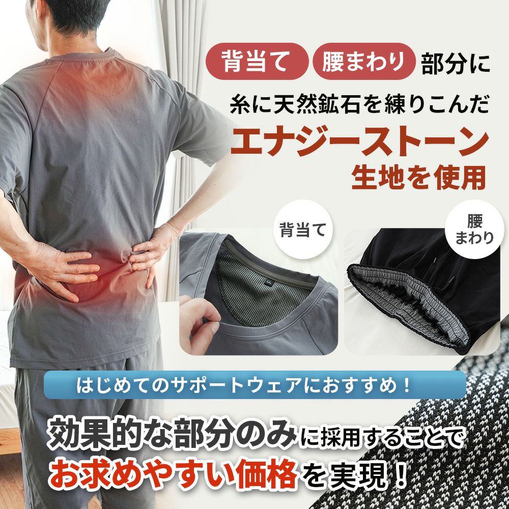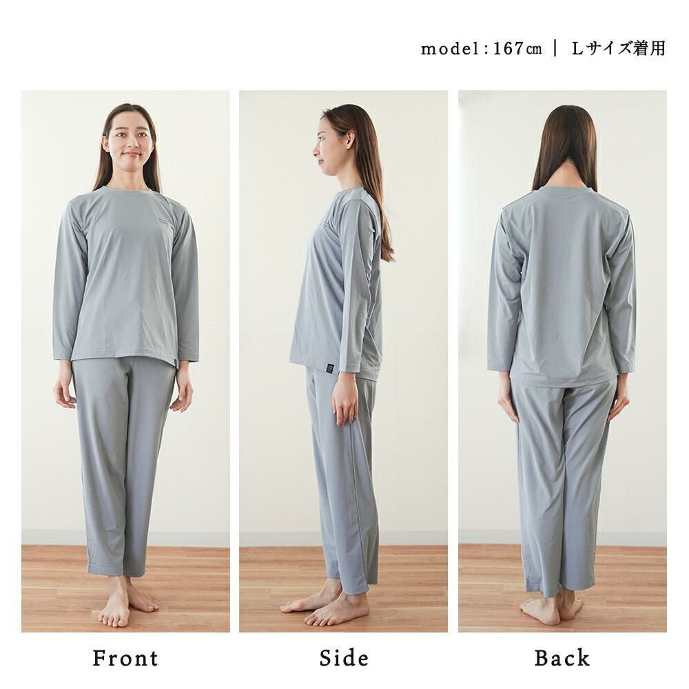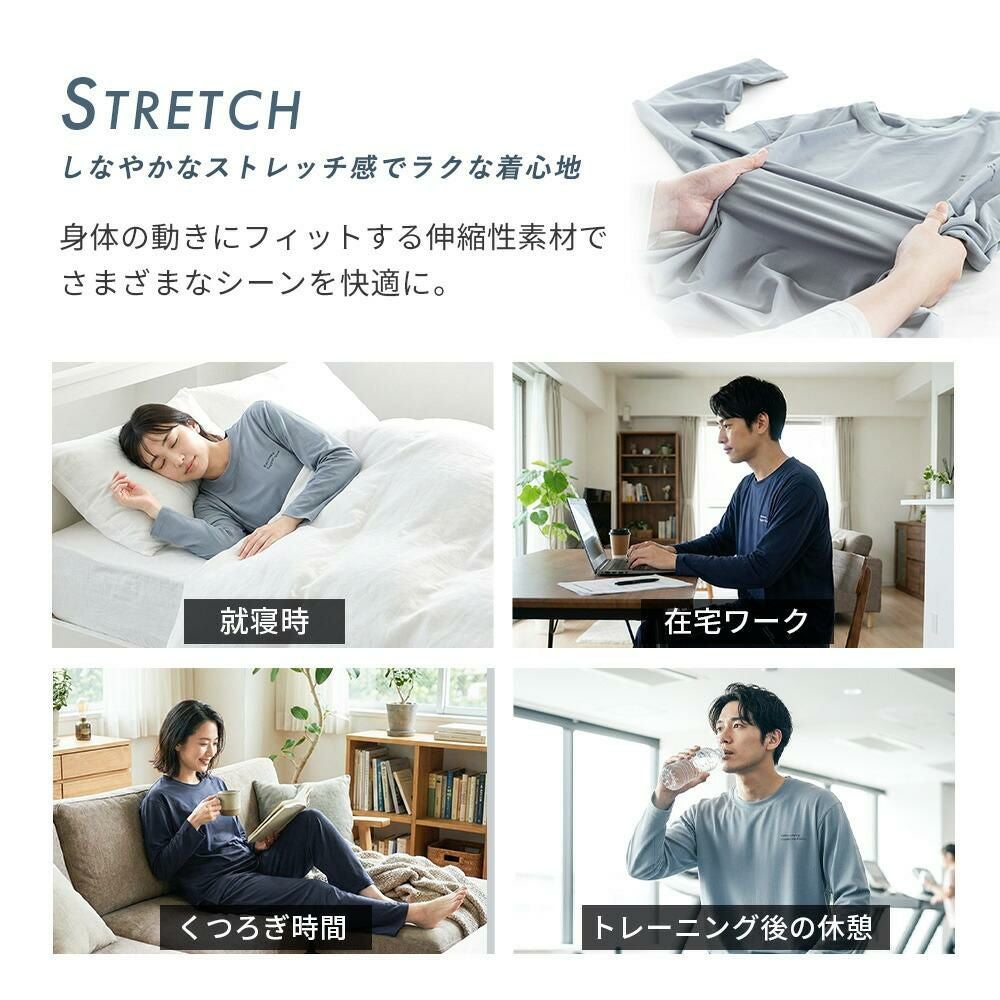 磁石の力で血流を改善。疲れて何もしたくないような時でも着るだけで身体のメンテナンスができるのがリカバリーウェアの良いところです。理由は肩と腰に設置された8個の磁石が血流を改善してくれるから。動きを妨げないゆったりとしたシルエットは寝心地も抜群です。