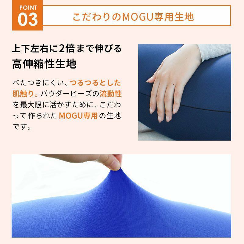 MOGU(モグ)独特のフォルムと超微粒子パウダービーズ、そして高伸縮性生地がどんな寝姿勢でもかしこくフィットし、まるでオーダーメイドのような抱きごこち♪