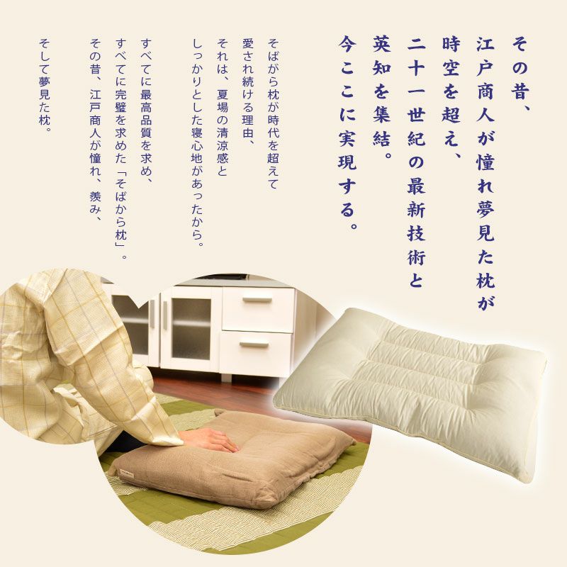 そば殻は通気性・吸湿性に優れ、サラッとした心地良い清涼感があり蒸し暑い夏にもオススメの素材です。