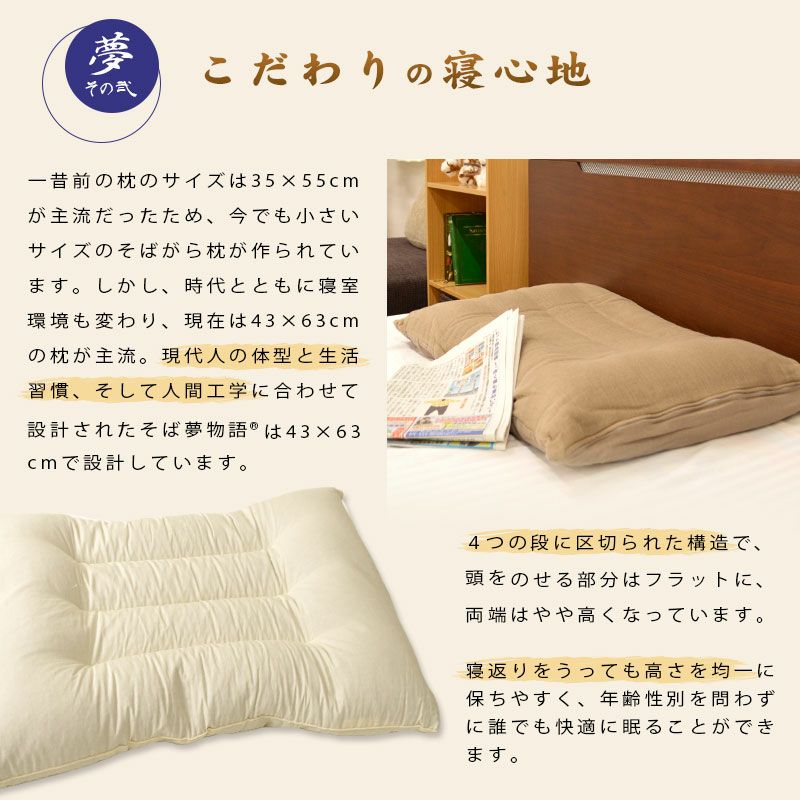 KEYWORD:まくら/枕/そば殻/そば枕/そば殻枕/そば夢物語/防虫/かため/カバー付き/ウォッシャブル/洗える/日本製/国産