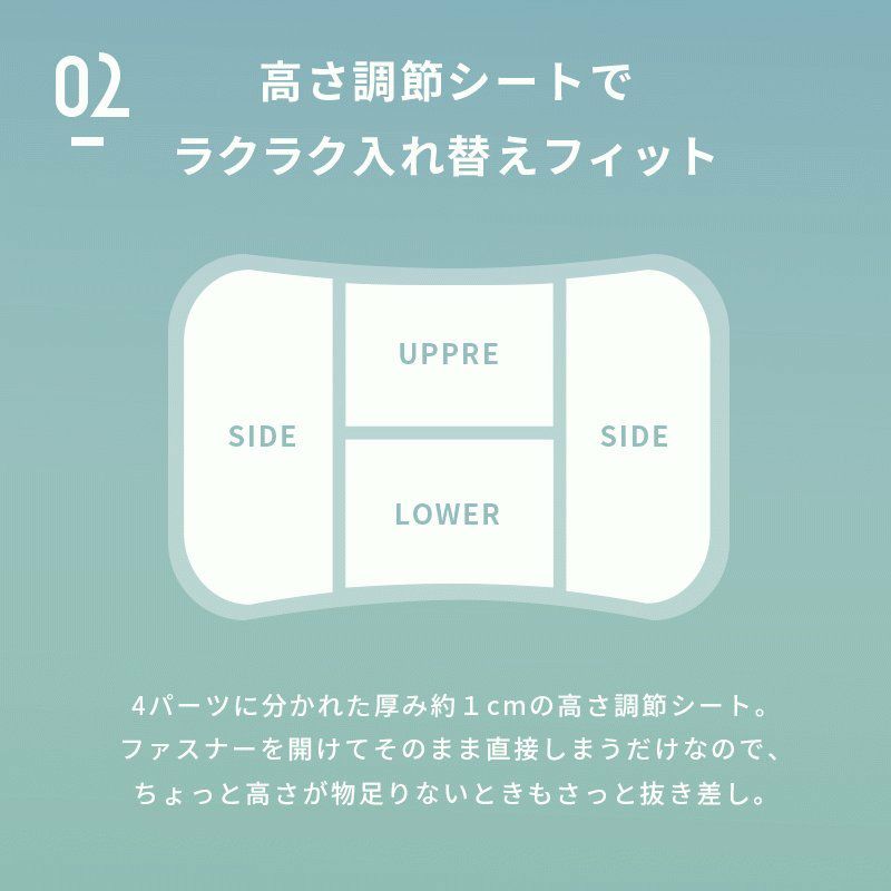 ざっくりとした高さ調整はウレタンシートを抜き差しするだけでOK!4パーツに分かれた厚み約1cmの高さ調整シートは、ファスナーを開けてそのまま直接しまうだけなので、ちょっと高さが物足りないときもさっと抜き差し可能です。