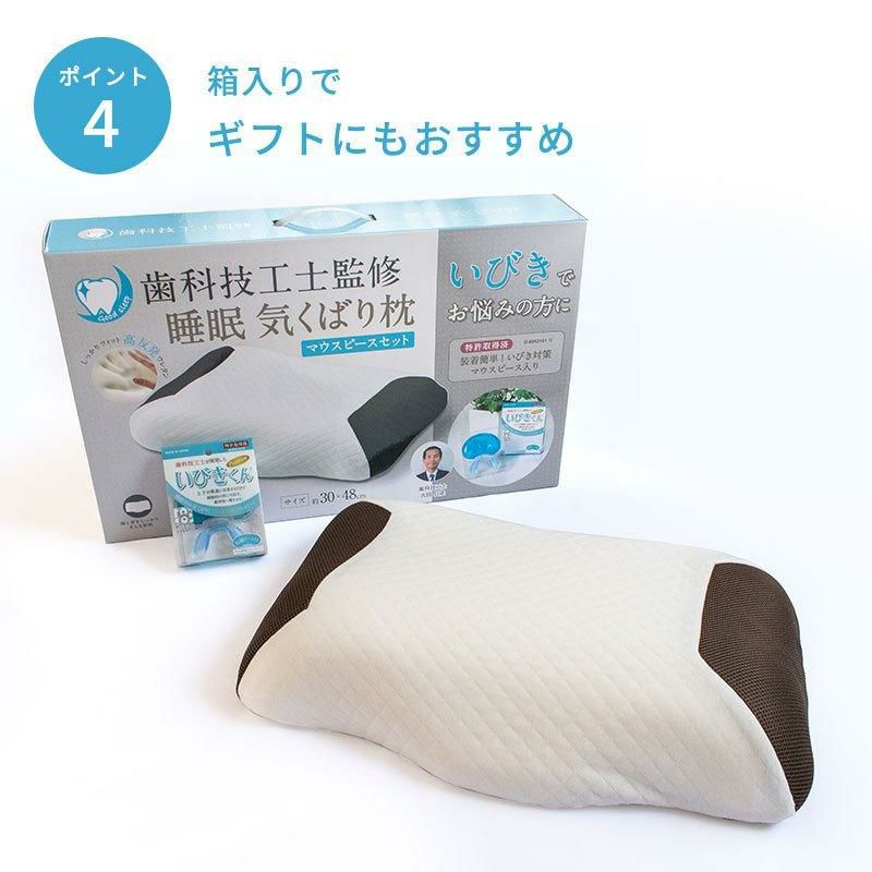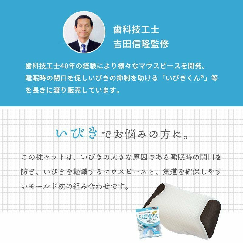いびきを抑制するマウスピースと、気道を確保しやすいモールド枕の組み合わせです。