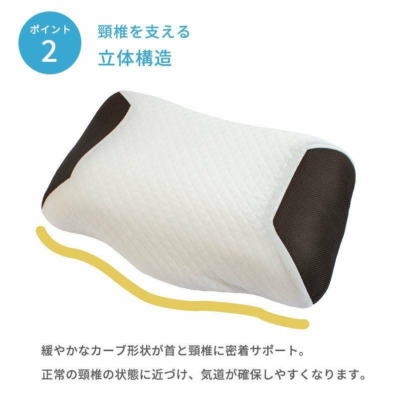 また、緩やかなカーブ形状が首と頚椎に密着サポート。