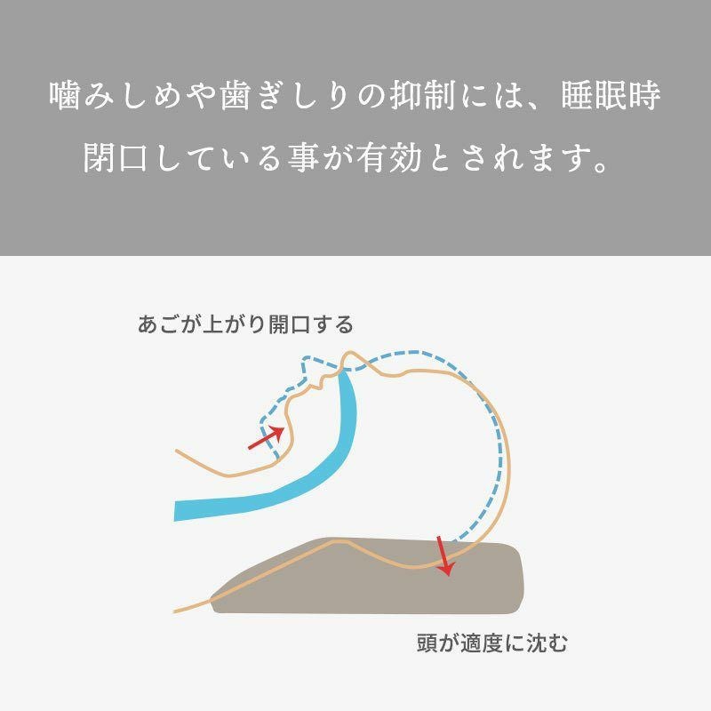 やわらかめの低反発ウレタンで、頭が適度に沈むことで顎が上がり、開口しやすい状況を作ります。