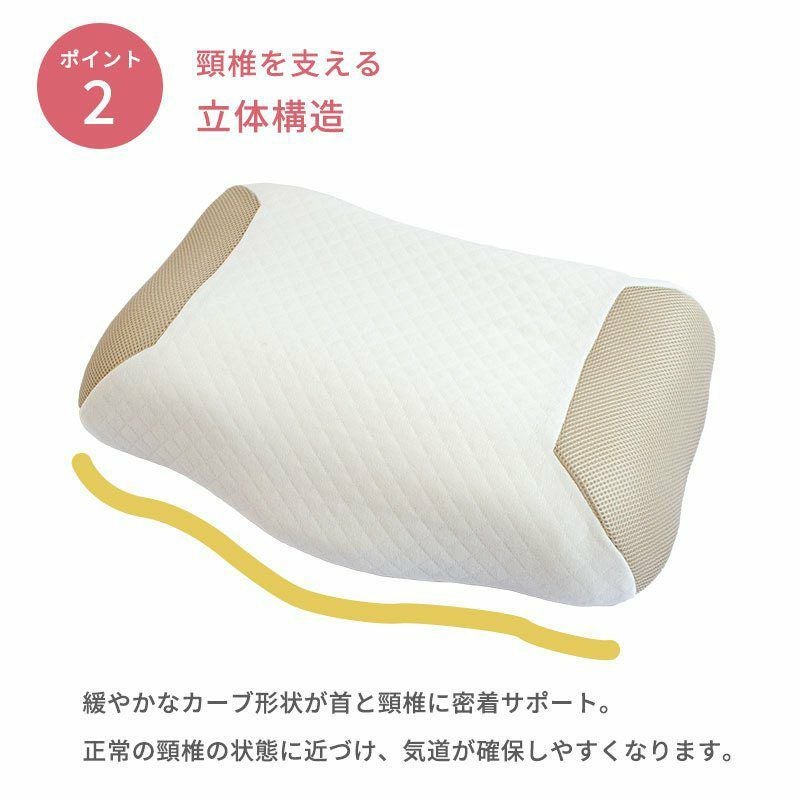 また、緩やかなカーブ形状が首と頚椎に密着サポート。