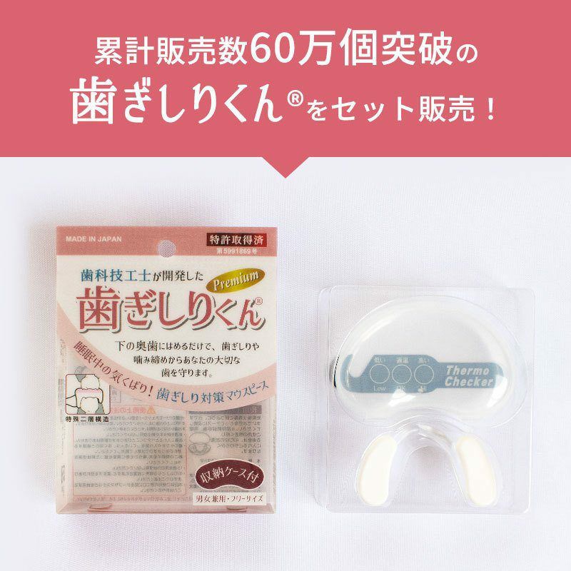 さらに、累計販売数60万個突破のマウスピース「歯ぎしりくんPremium プレミアム」をセットでお届けします!
