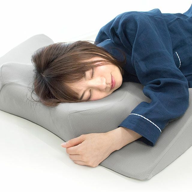 東洋医学では横向き寝が安眠するのに最も良い寝姿勢だともいわれています。 横向き寝をすることで、気道が確保されて呼吸がラクにでき、より深い睡眠をとることができます。 ウィングピローはこの独特な形が、横向きで寝たときに頸椎・肩口にぴったりフィットし、頭・首・肩・腕の4点が水平になるよう、バランスよく支えてくれます。