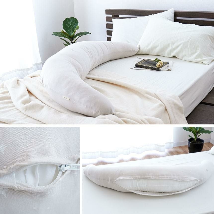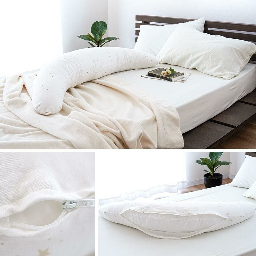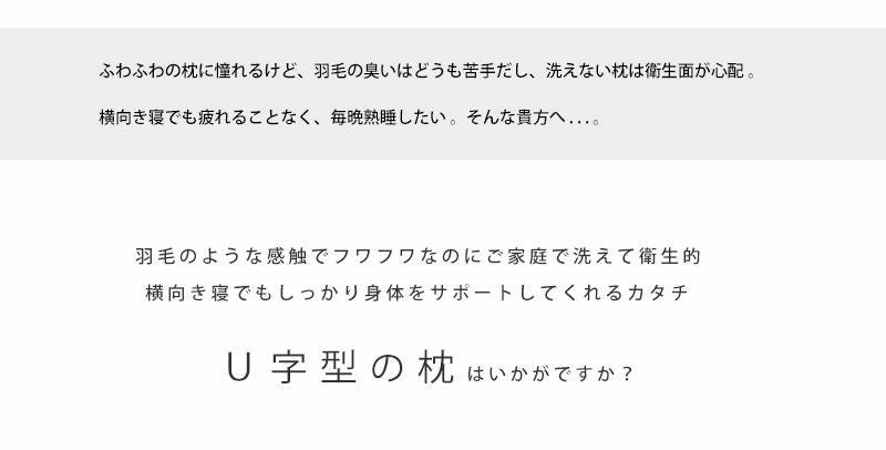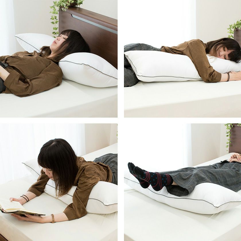 羽毛布団をクシュッと抱きしめて寝るのがお好きな方におすすめ。自然な暖かさと安心感をお届けします。羽毛はワタよりも暖かく、ビーズよりも放湿性がよくムレにくいのが特徴です。また弾力のあるふっくら感も羽毛抱きまくらの良さです。