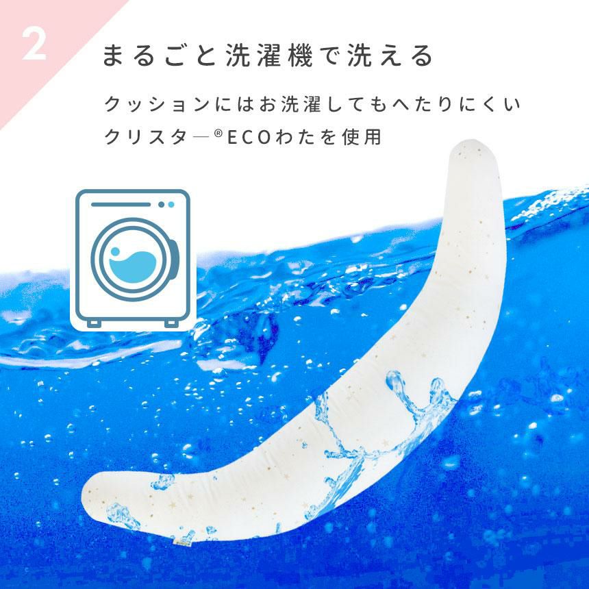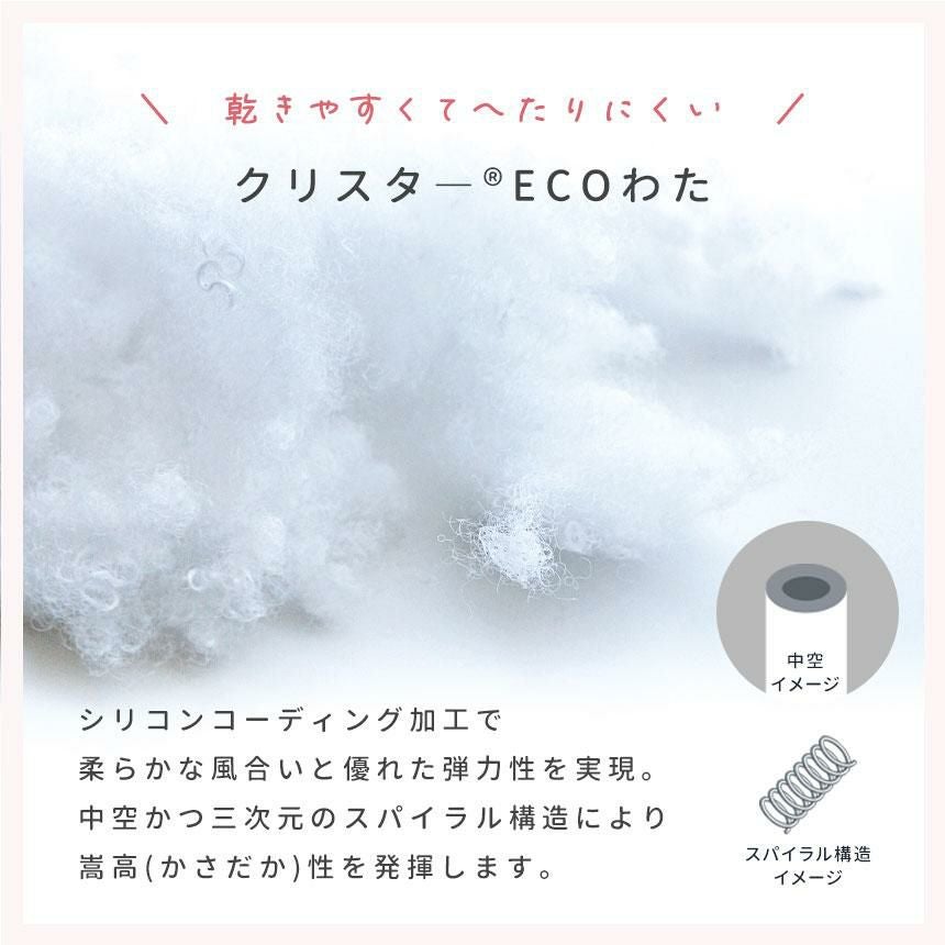 羽毛はダウン率85%のリサイクルダウンをたっぷりと使用しました。環境への配慮と暖かさを両立した抱きまくら、当社のオリジナル商品です。