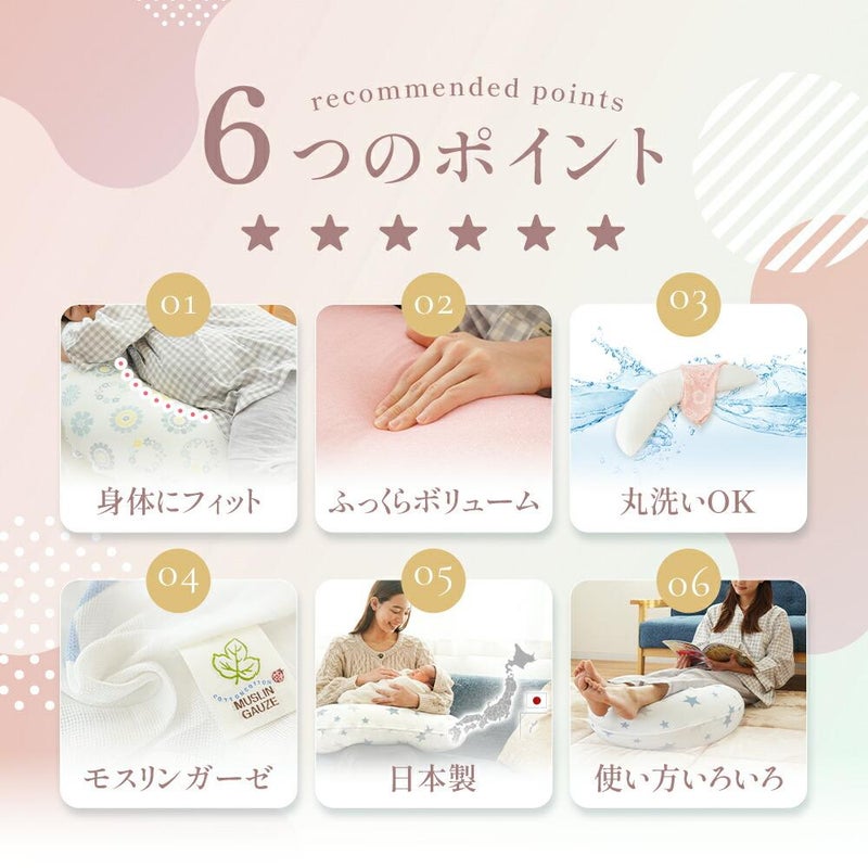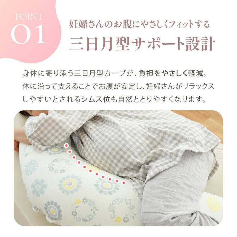 妊娠中も、産後も。やさしく支えて、ずっと寄り添う三日月クッション。 三日月型 マタニティクッション 日本製 モスリンガーゼ 妊娠中から産後まで使える 多機能 抱き枕