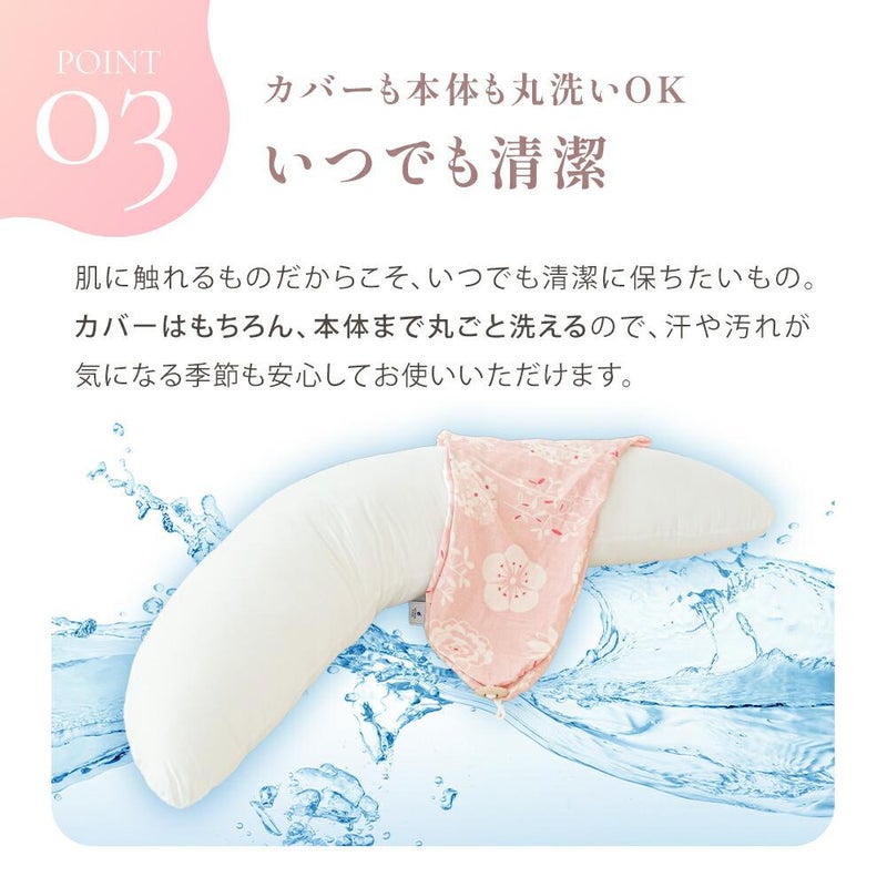肌に触れるものだからこそ、いつでも清潔に保ちたいもの。カバーはもちろん、本体まで丸ごと洗えるので、汗や汚れが気になる季節も安心してお使いいただけます。