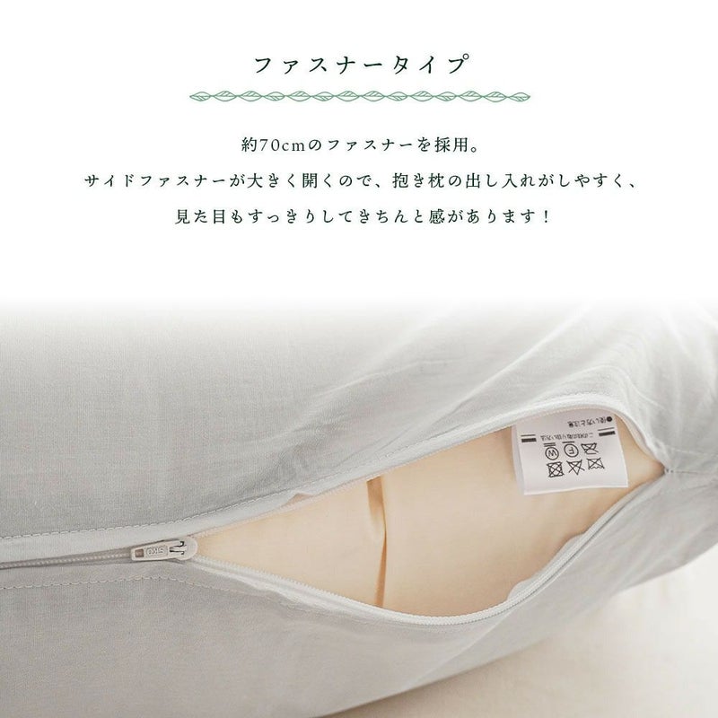 約70cmのファスナーを採用。サイドファスナーが大きく開くので、抱き枕の出し入れがしやすく、見た目もすっきりしてきちんと感があります!