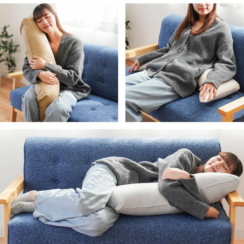 寝る時だけでなく、ソファや椅子に座ってリラックスしたいときにも。寝かせたままでも、座った姿勢でも、あらゆるシーンで使いやすいデザインです。
